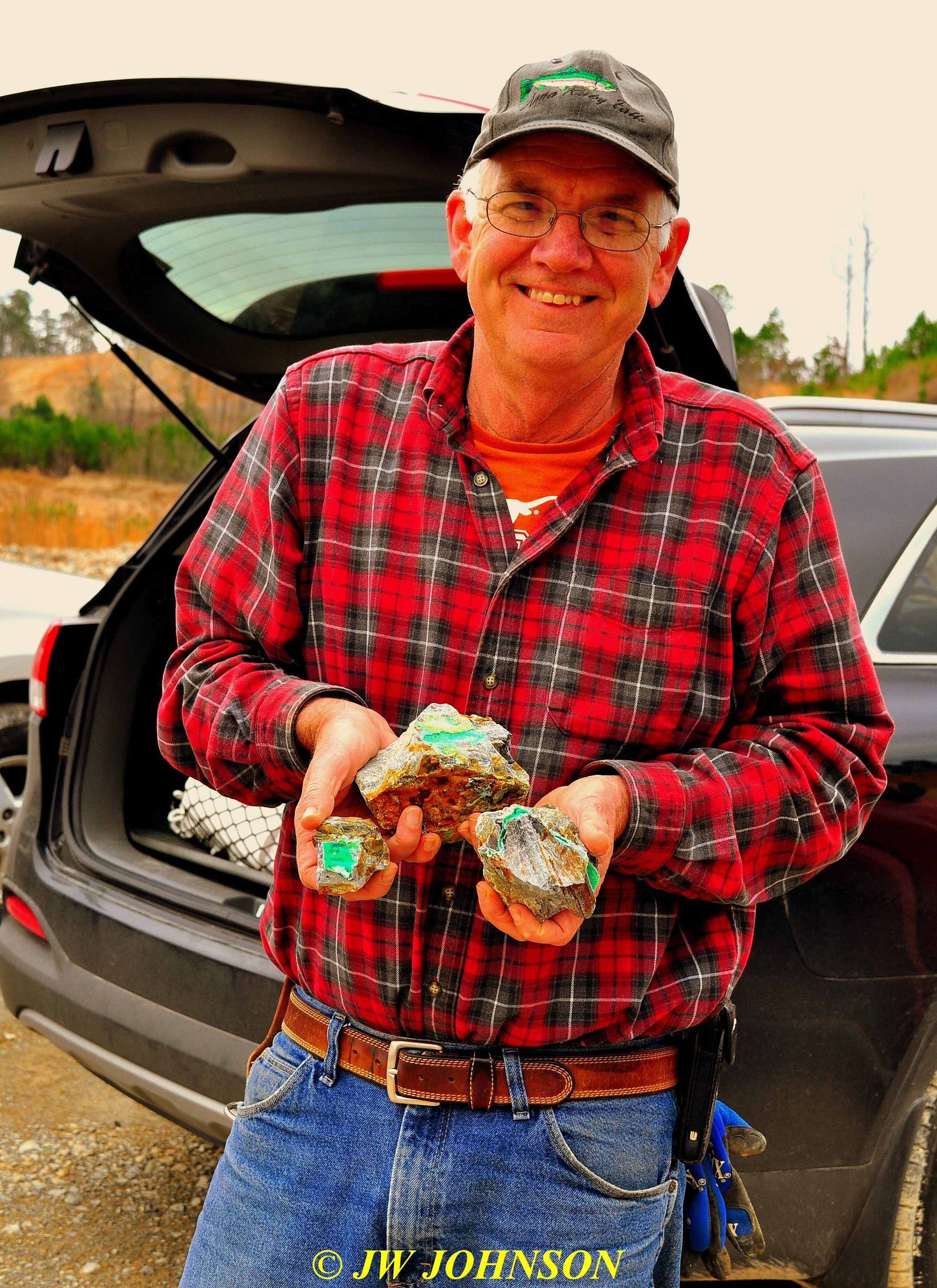 064 Mark Bishop With Wavellite Published March 12, 2018 at 2122 × 2917 in Return to Blue Phantom Mine near Mt Ida, Arkansas
