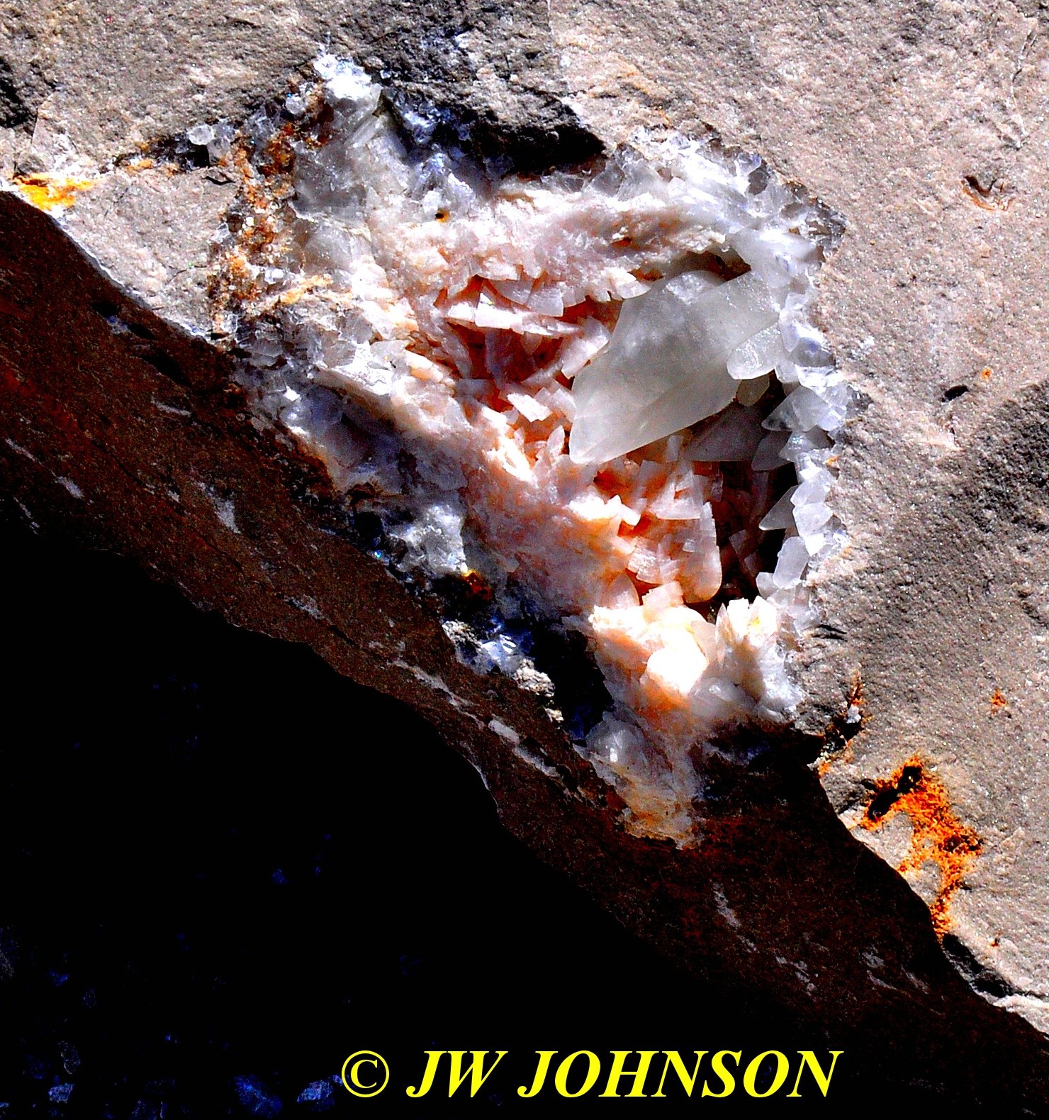193 One of my Monday Finds Clear Calcite Crystal in Pink Dolomite Vug