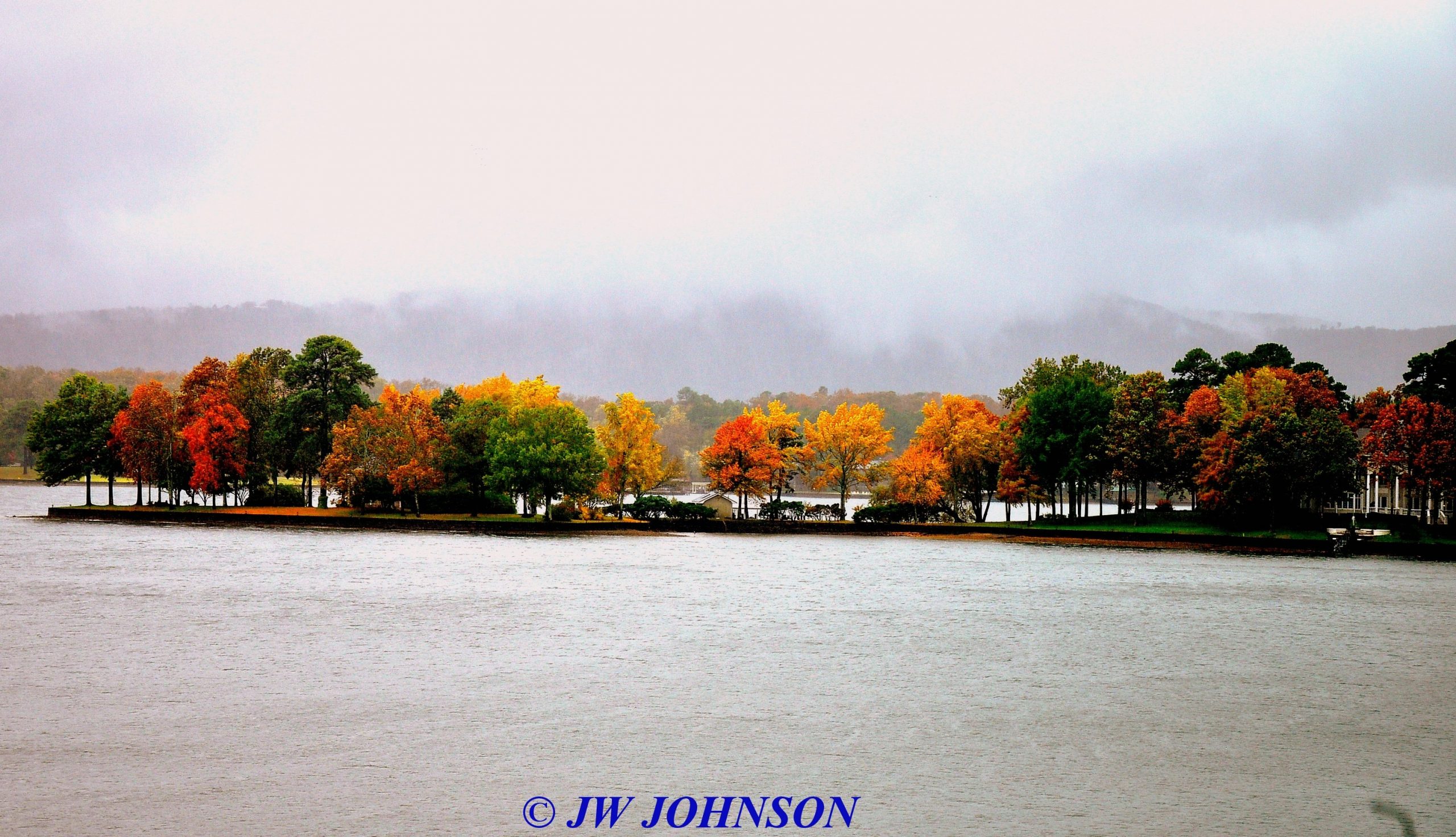 02 Fall Colors on Point Across From Pretti Point Published December 28, 2019 at 2560 × 1472 in Arkansas Fall Trip 2019