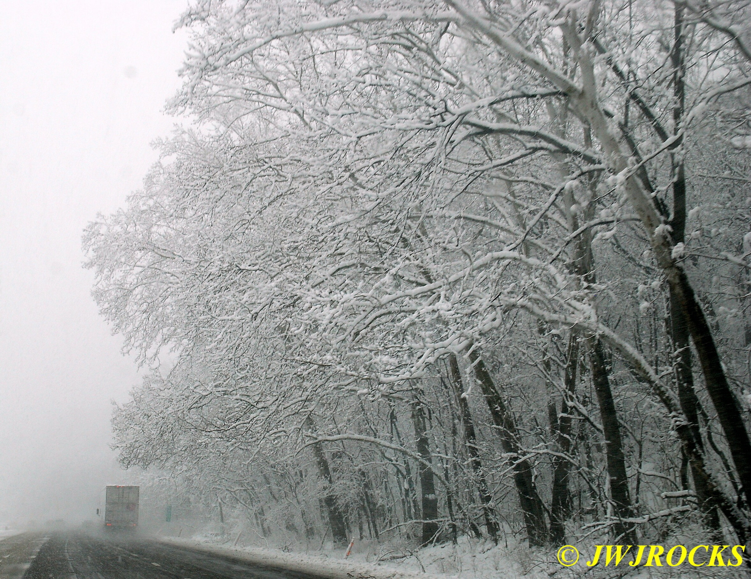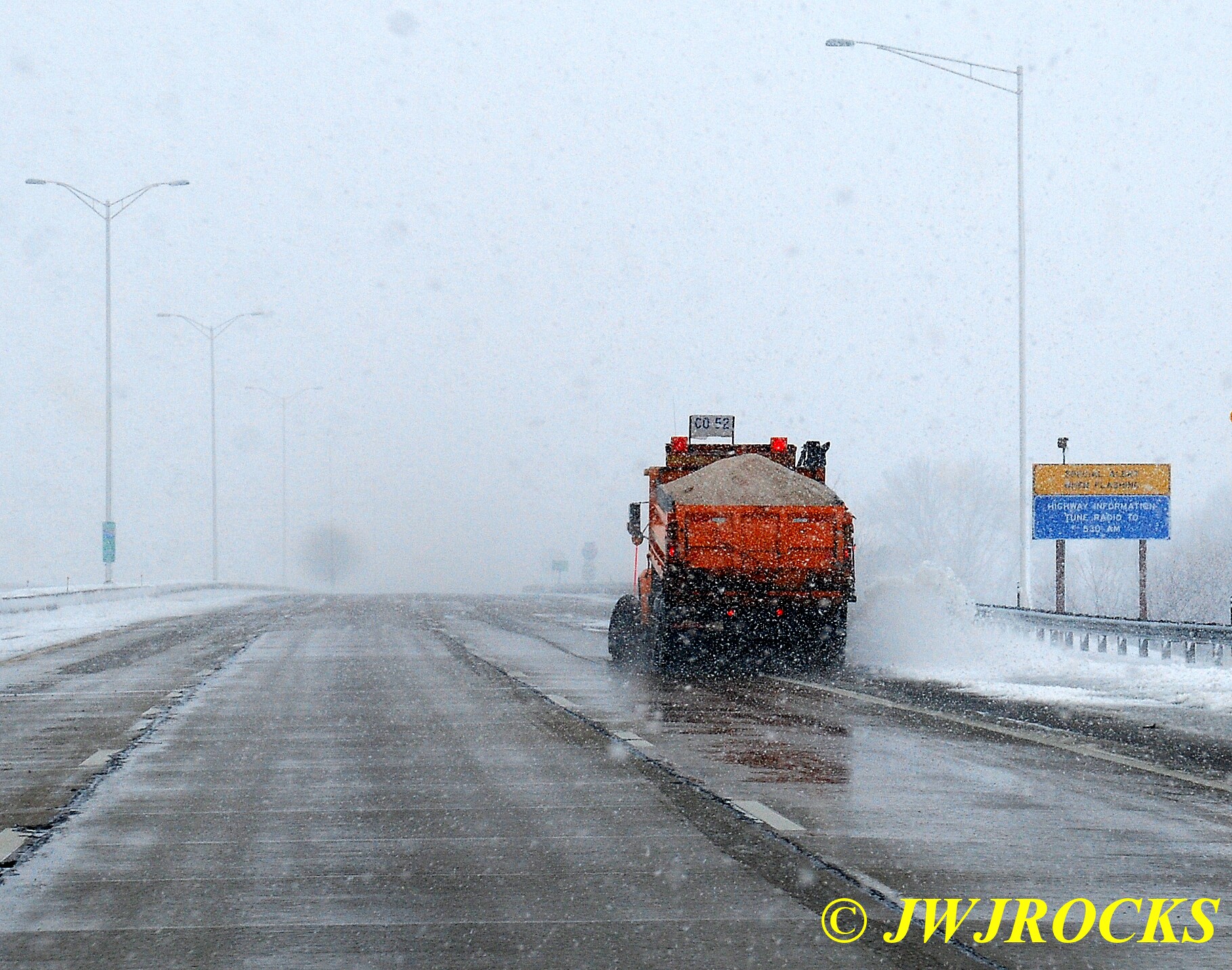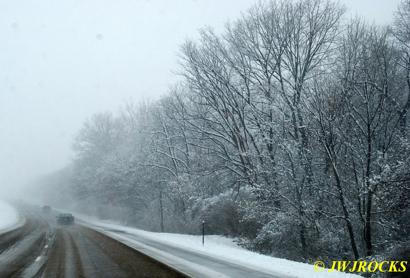 This year I was joined by rockhound friends Jim Ericson from the Minneapolis area, Chuck Reed from the St Louis County area, and David Sorrells from the Paducah area. Jim had quite a trip down there, leaving last Thursday morning early and driving through a foot of snow on the ground and roads, dumped there the night before from that storm that barreled across Colorado the day before, which stranded motorists all the way across the state under 17 inches of snow. Jim made it thru southern Minnesota and then Iowa as well, snowing on him the entire time until he safely reached Missouri, where the snow finally stopped clinging to everything and he was able to make much better time on the roads. He sent me some images of his harrowing, white knuckle drive down there….