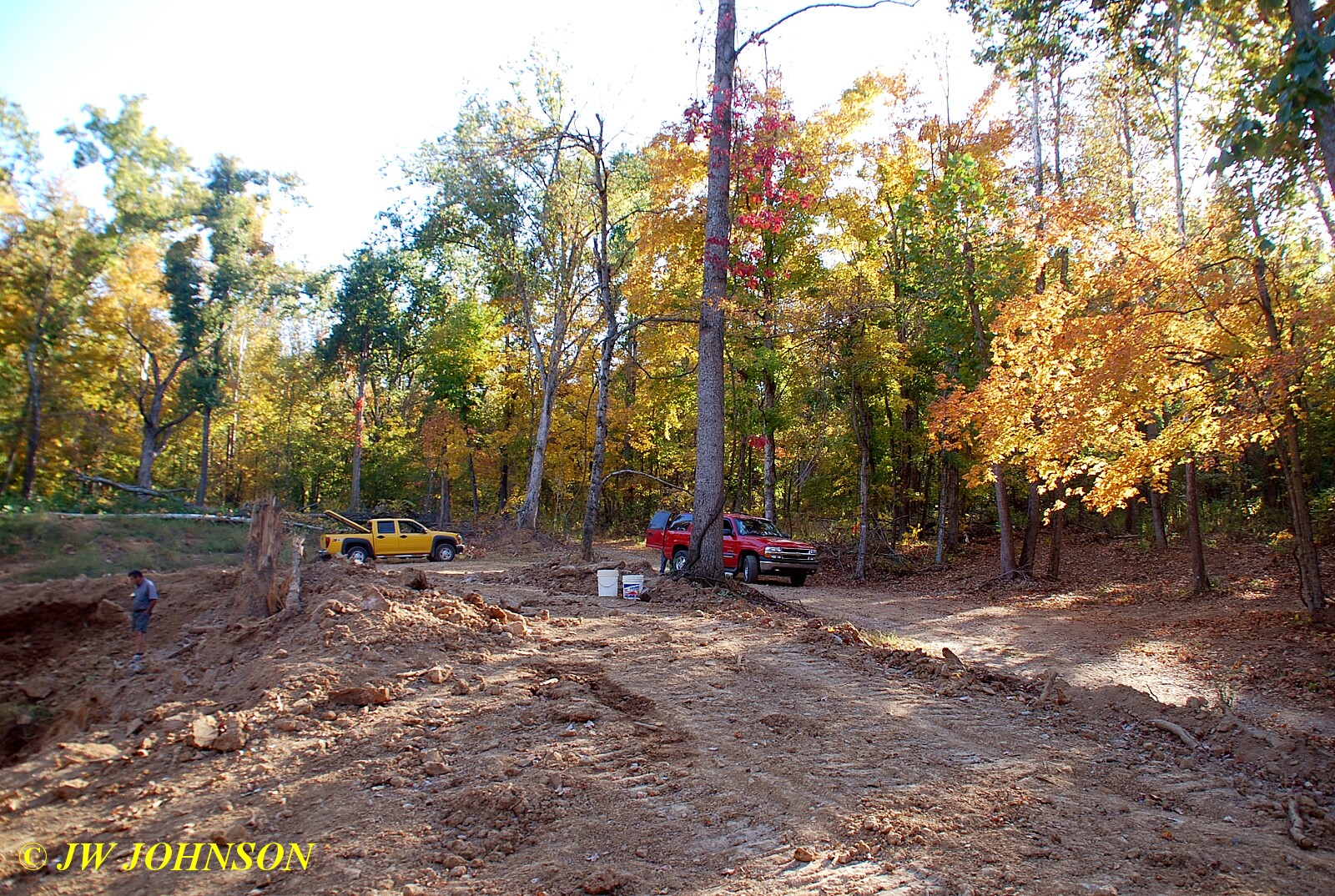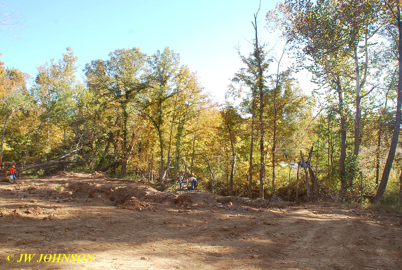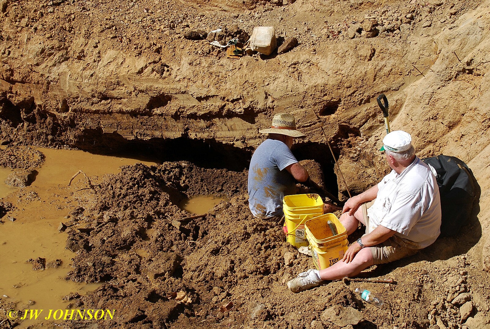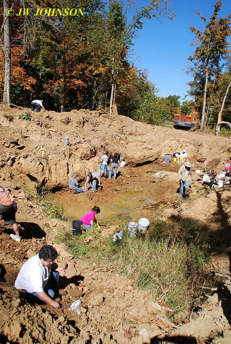 …by mid afternoon, Mike and Chrissy loaded up for their seven hour drive home and I left about an hour later….there were four left in the pit by this time and the pump was kicked on for a little more lowering of the water level to explore for more pockets…within a few minutes the big pit was drained dry and the smaller pit lowered to explore a pocket or two…I reached down into one of the smaller pit pockets and a large frog came jumping across my arm and hand and out of the pit….and naturally as startled as I was, I let out with a loud word or two and everyone looked up to see the frog flying through the air.