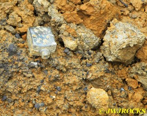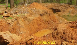 …it`s mainly made up of fill from tailing piles, so probably has some nice material in it, but several people have heard so much about the pit itself over the years, harvesting so much nice plates of cubes, that many want to go right down into the pit…this year the museum staff was unable to pump the pit down so everyone decided to walk right down to the waters edge and look around…not realizing that the mud at the very edge was extremely soft and one could sink to their knees very quickly. I was able to warn some and others found out the hard way. In the area to the right of that fill, there used to be a vertical shaft of an unknown depth, so we have always told folks to avoid that area, and I had to run a few out of there Saturday as well, for safetys sake. We had tried to get that area filled in last spring, yet the trackhoe operator was unable to reach that far to dump the fill dirt in there on top of it…it would have effectively sealed off the waterfall from the creek there as well.