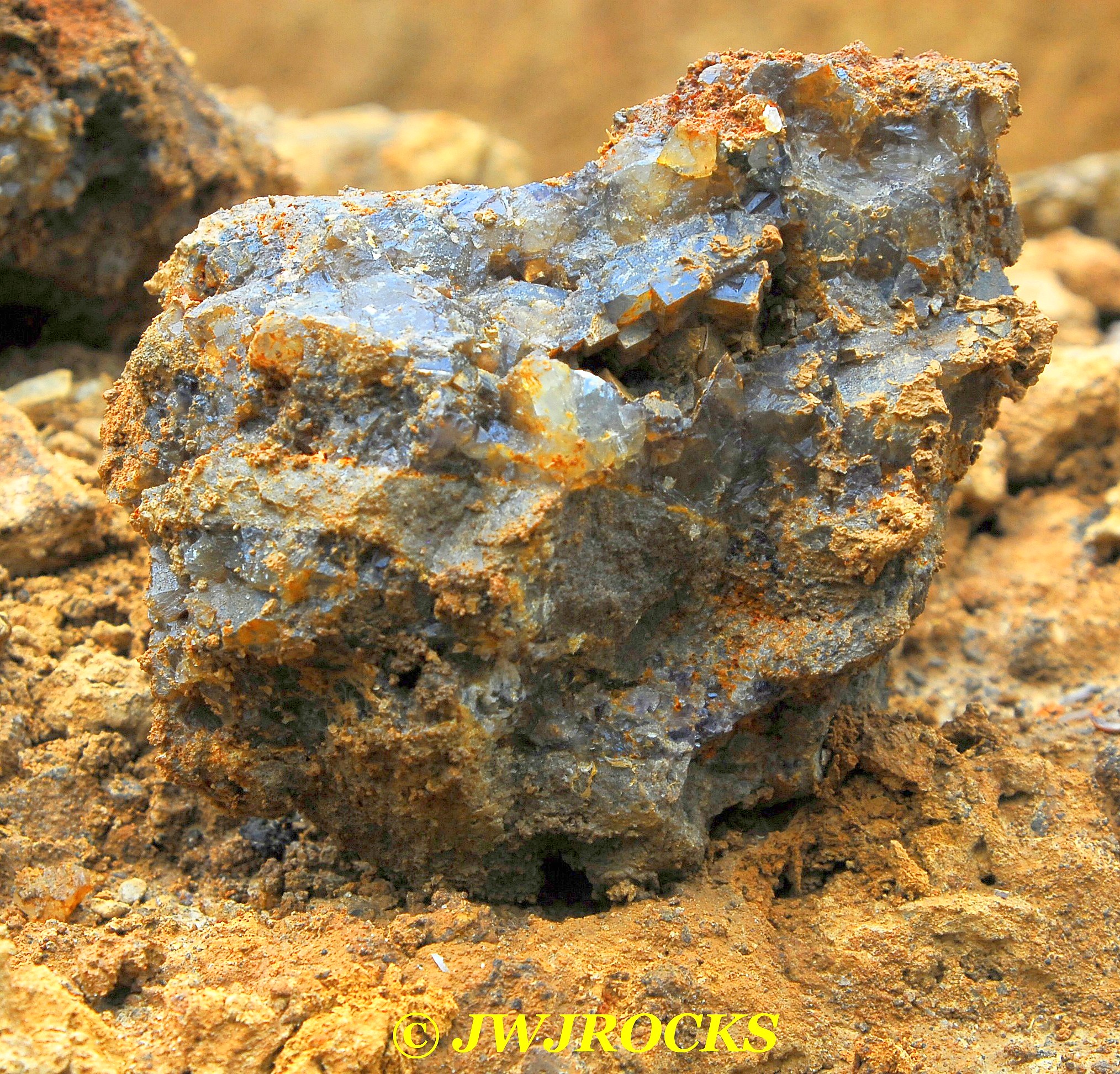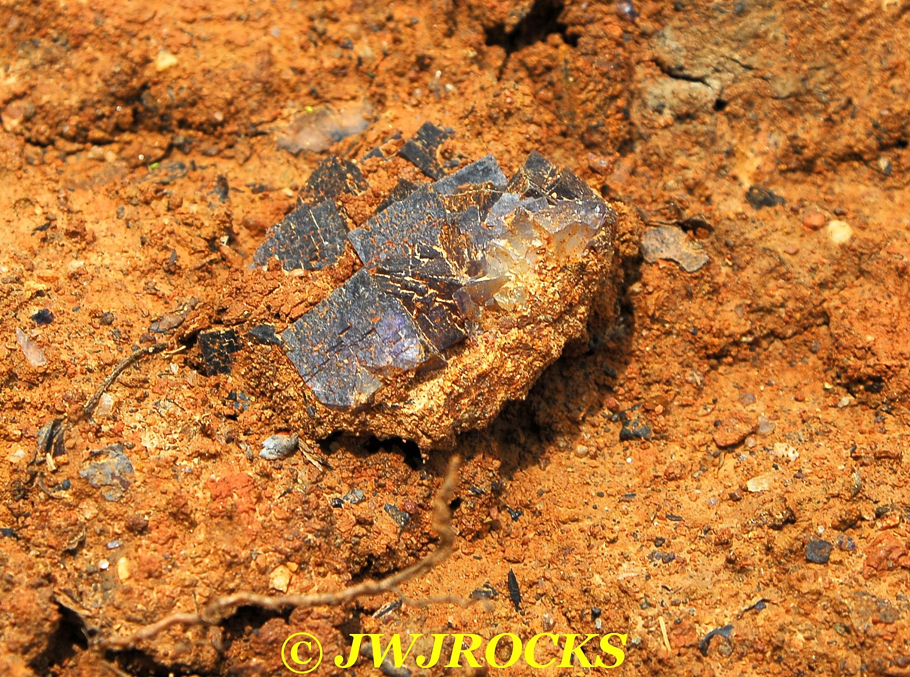 …you see that little guy in the photo above in green shorts and shoes ? talk about a fearless guy…he wasn`t afraid of the mud or water either one, he was here to have fun whether he found anything or not…enjoyed throwing rocks into the creek and splashing Phillip who was trying to find some fluorite in the vein that runs under the creek. Phillip is another Magma member that is very nice…he and his wife Shirley drive up there frequently from the Danville area…Phillip told him that if he kept throwing rocks, he was going to to dunk him a few times in the water and see how much he enjoyed that…that`s his mom washing off some finds in the pit above in the blue shirt…when she found out what he was doing, she threatened him with a spanking and then we found out that he wasn`t so fearless afterall and he behaved a lot better after that…he sure had more energy than anyone I know of. I made sure he had a nice piece of fluorite when they left, too.