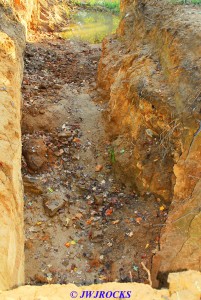 Bill was concerned about folks digging into the bank there and further adding to any compromise, so I made a mental note to keep that from happening as well as a few danger spots that I have become familiar with over the years. Some folks enter a site and look for the host and ask questions about what they are looking for as well as where to look, while others just get so excited on arrival that they just walk in and start digging…sometimes having no clue about any spots that might have hidden hazards. Take for example, the north side of the pit…