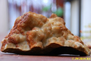 Since my family celebrated Christmas on Christmas Eve, due to my work schedule and my sister`s family schedule, I didnt have anything planned and neither did Docia, so she met Missy and I at the secret spot about 10 am. It was alot colder than it has been, about 27 degrees when we arrived, but hey, a little cold weather doesnt stop the hardiest of rockhounds. I figured we would be sheltered from the wind as well, as we have in the past, but not this time…it was whipping around in there the whole time we were there. Missy and I arrived first and after getting my boots on and laced up, I headed over to a section of older wall where I could see what appeared to be a pocket that I hadnt noticed before. I was up there chipping around with my mini mattox when Docia arrived. I took a break and walked down to get a few dogtooths out of my truck for her from my last trip there, that I had found. She handed me a box that contained a gem tree for my supervisor, Patty….