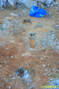 Lance has brought in machinery and turned over the old piles of rock to make it easier to find pretty druse and barite. In the first collecting area, there are clay dirt piles near a pond that are full of druse quartz in smoky, blue, and green colors and barite in forms of hand grenades, pineapples, crystalline, bladed, and combos…..