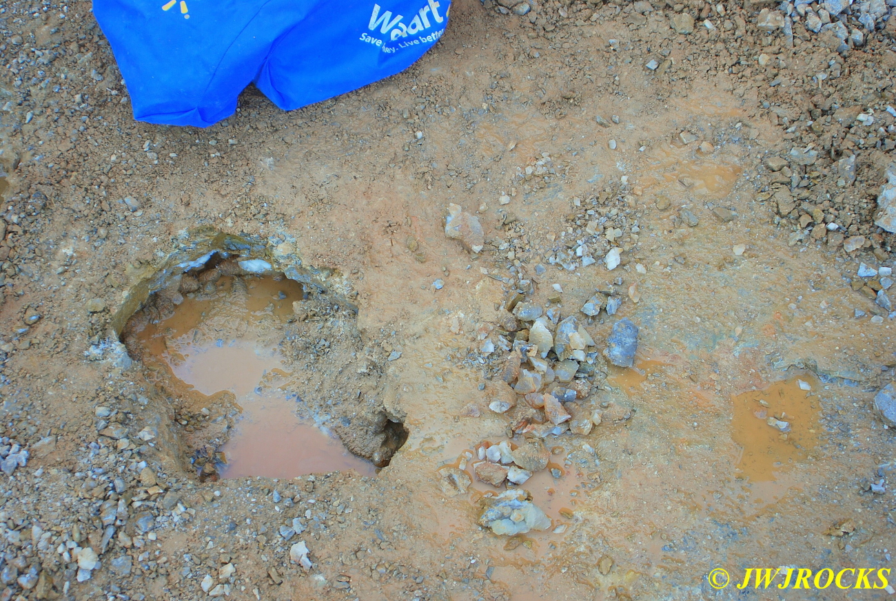 The soda straw plates in the photos above, came out of the creek below the lake…I call it Spillway Creek and it carves thru a section of Daniel`s property that is loaded with this material and more…each time it rains, more material is exposed for collecting. I believe this area will last for collecting purposes for quite some time to come…..