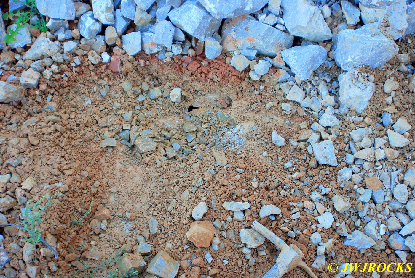 The first dig event there was a week later and I combined it with Dresser Mine Site first, then to Mary`s, and last to Lance`s Site…everyone did well but it made for a long day and we had to leave Lance`s sooner than expected, due to a fast moving thunderstorm line that popped up on radar pretty fast with a line of hail embedded in it. The second dig there was June 9th and everyone did quite well there that day…while they were all out hunting and collecting, I did a little extra scouting on the hillside above the lake dam and found a road full of druse and barite both up there…found hand grenades and pretty druse all over the place…