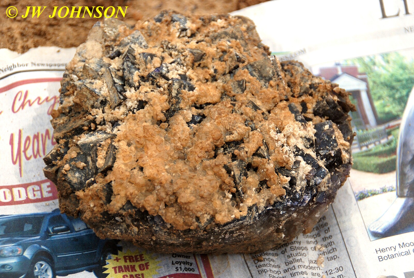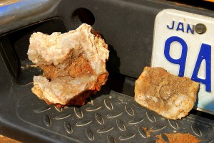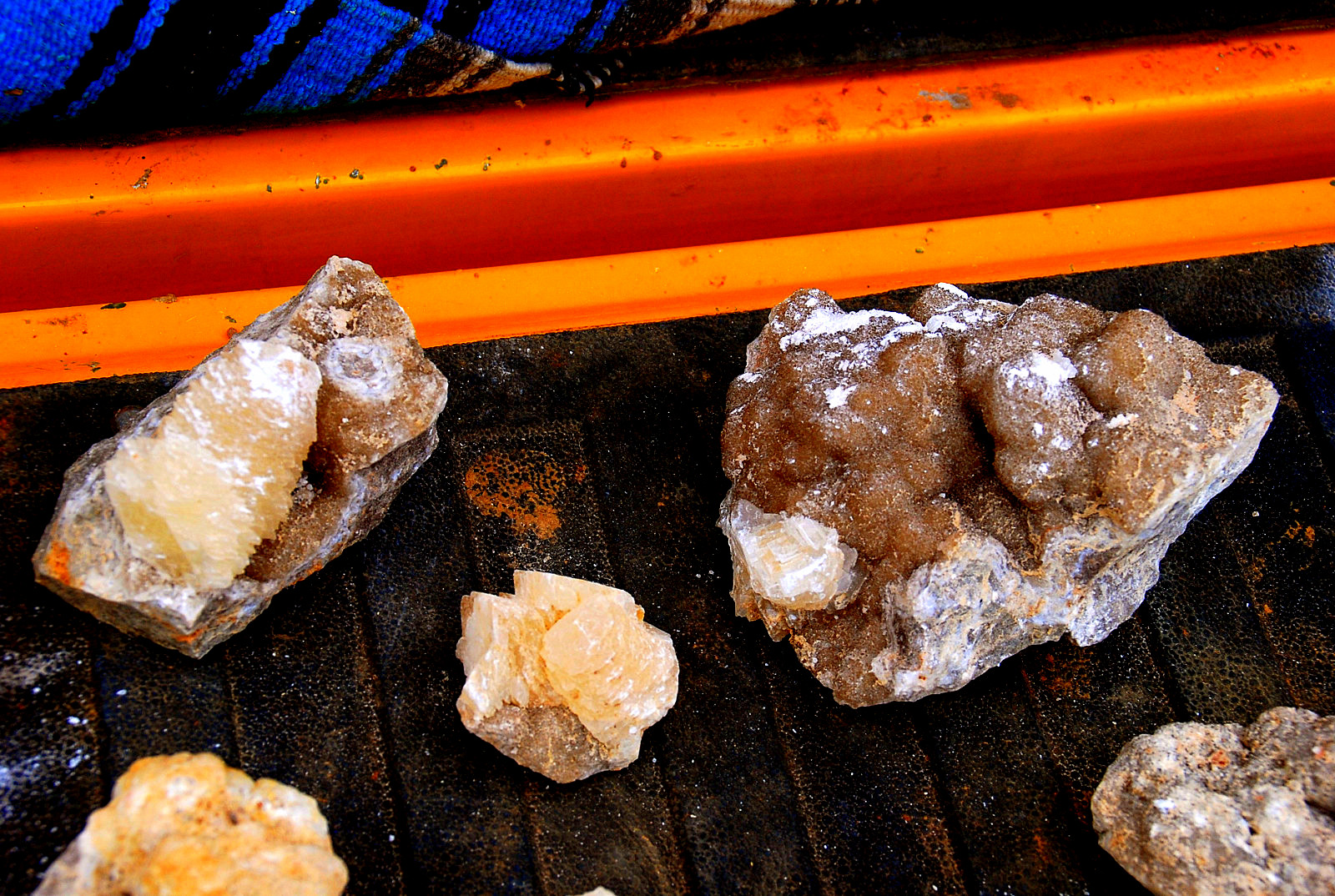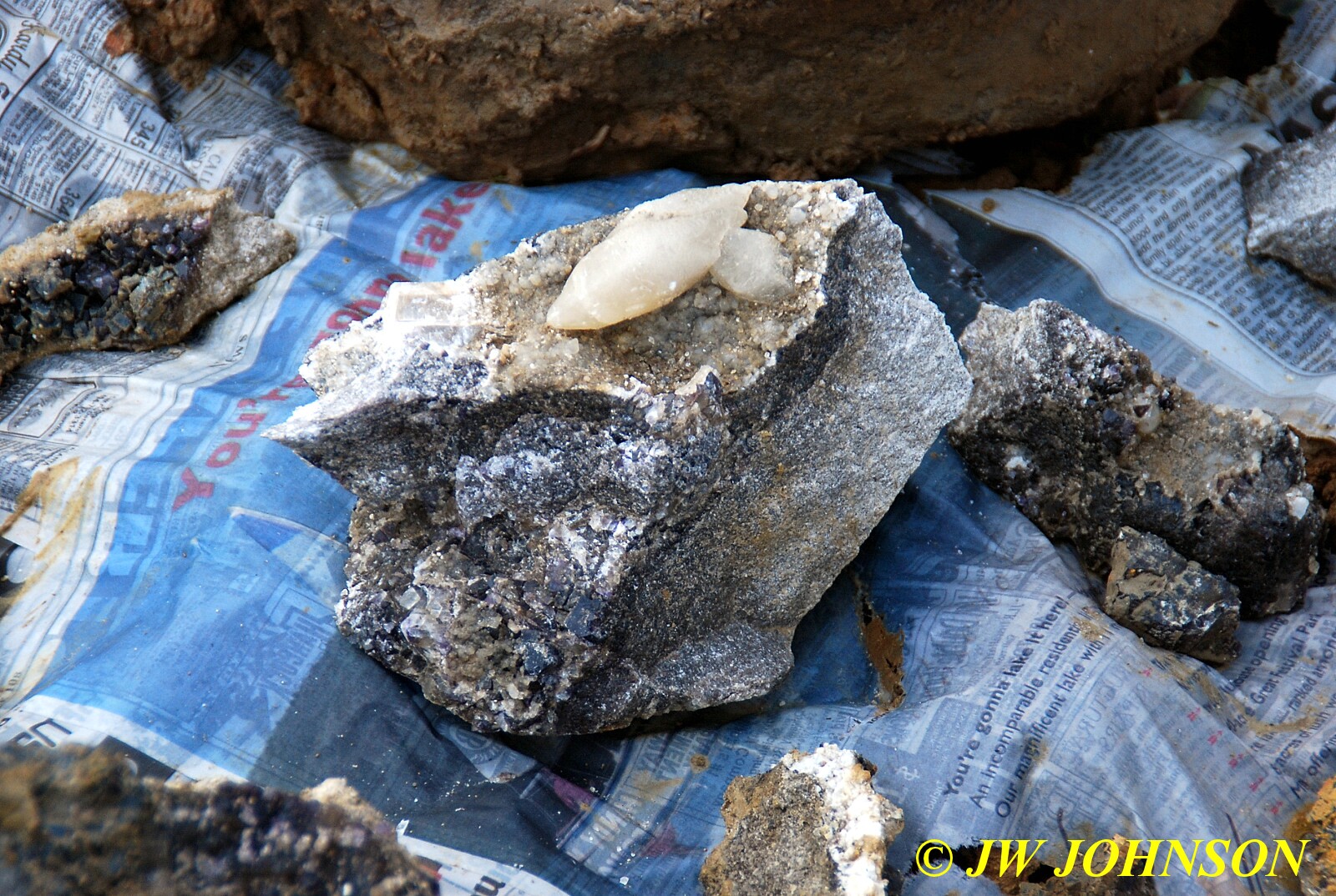 ..here is one of the nice chunks that Bill found later Friday and liberated….with a large calcite crystal sitting on top, something we rarely see at the Eureka Mine….in fact have never seen before or again since….