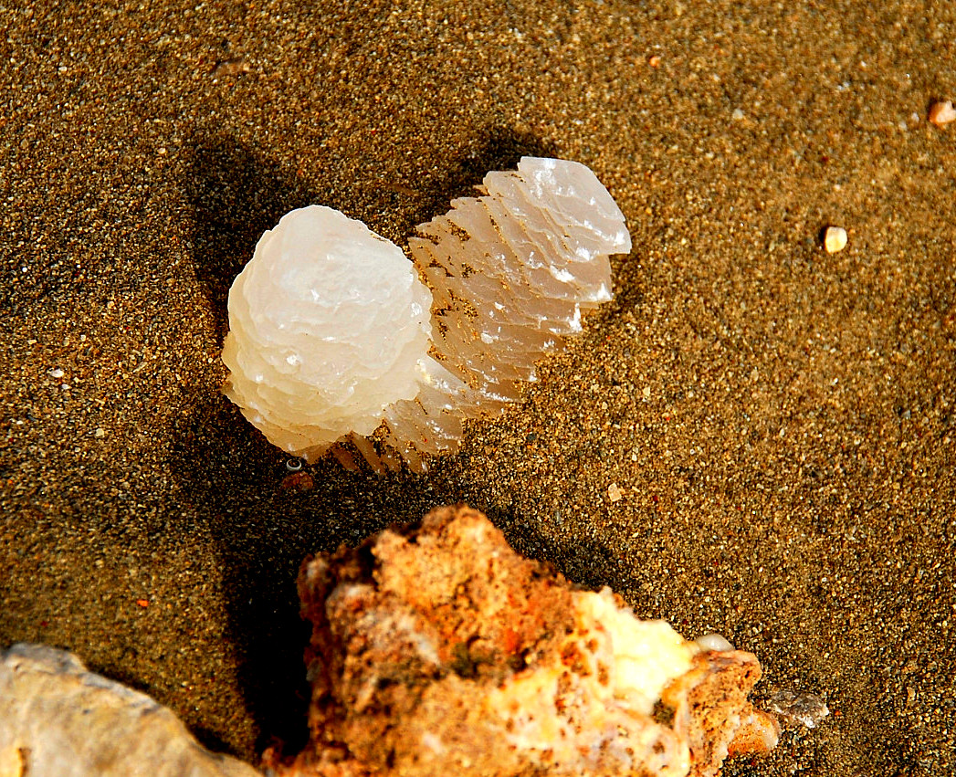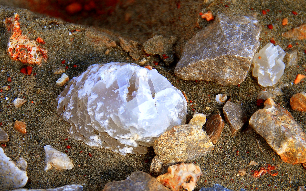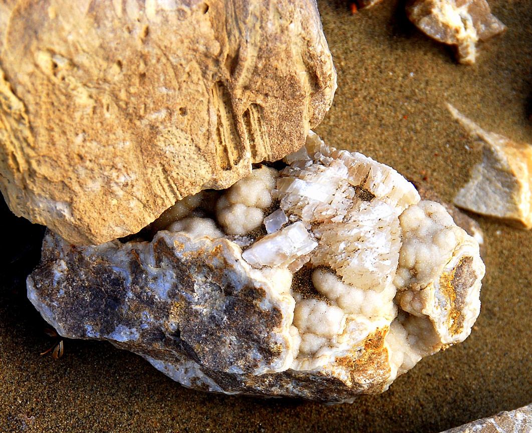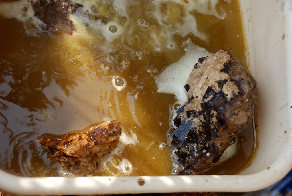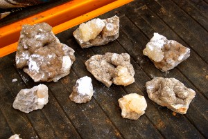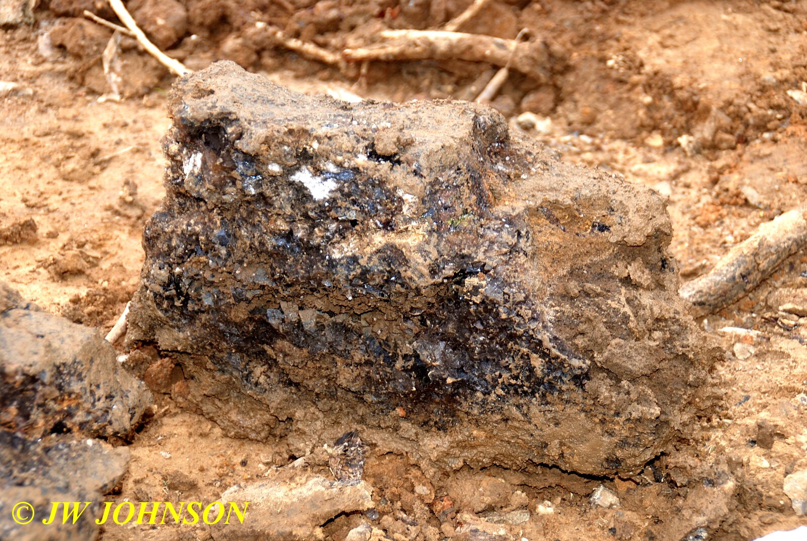 ..here is one of the nice chunks that Bill found later Friday and liberated….with a large calcite crystal sitting on top, something we rarely see at the Eureka Mine….in fact have never seen before or again since….