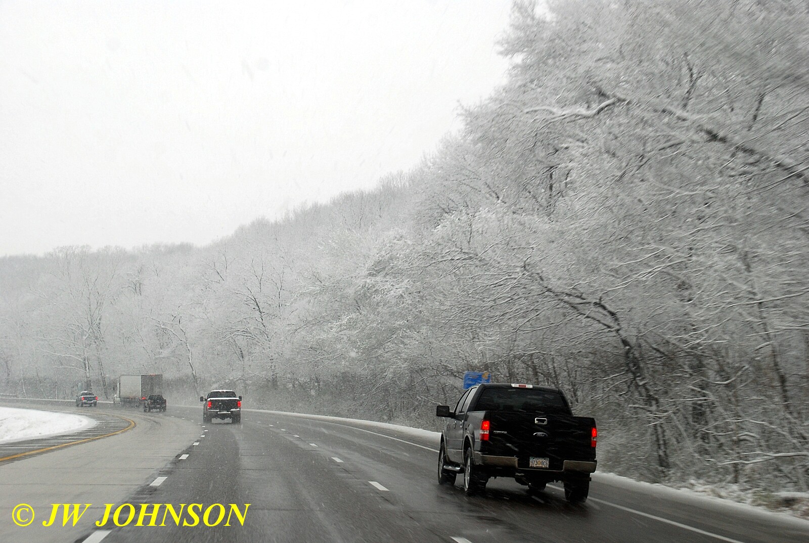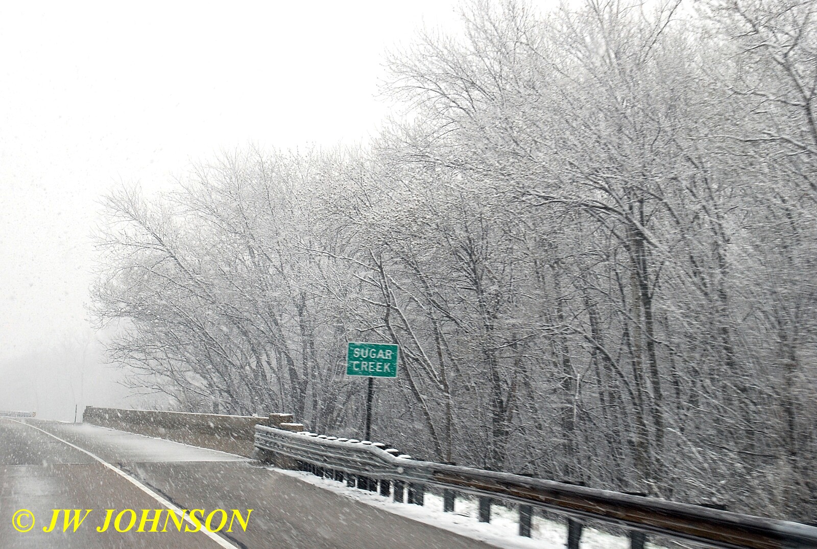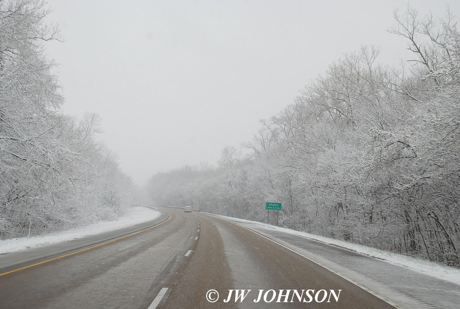 So we split up the finds and I took off about 2 pm and headed north toward Missouri….and sure enough, just west of Mt Vernon I started west into heavy snow and some sleet falling…the farther west I went, the bigger the flakes and the prettier it looked, heavy wet snows always make everything look pretty…