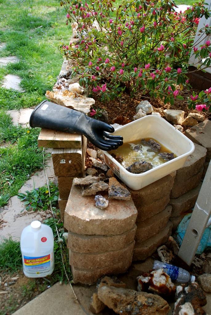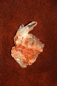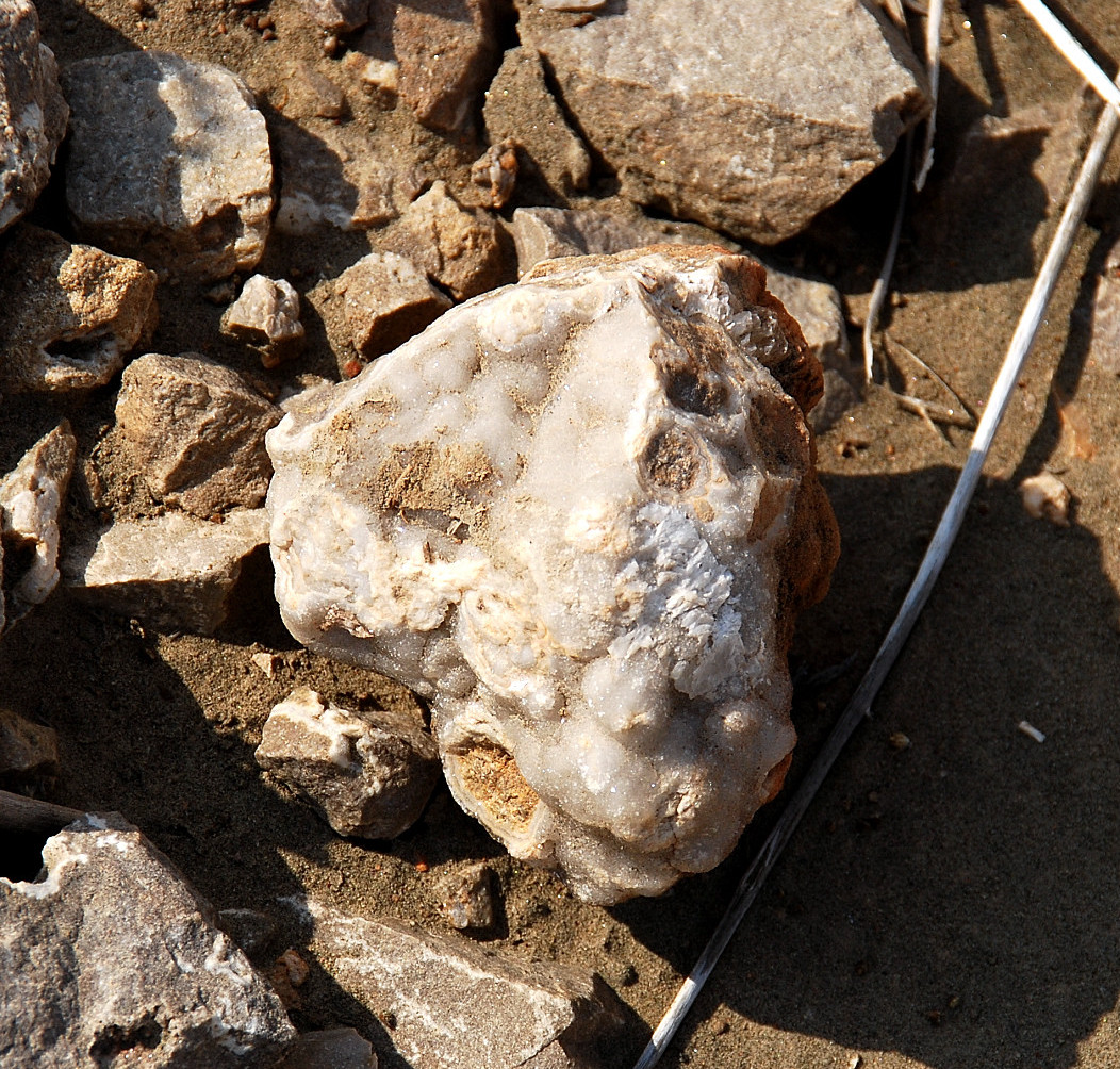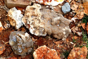 …I saw the pit looked relatively the same as the the last dig that I had been to in October last year…but alot of dirt and mud had fallen down from the walls on the high side and accumulated in the pit, on the west side especially. This was the high wall that I had dug into, at the base last fall and found some beautiful crystals, next to a couple of nice gentlemen from Indiana. I looked around the edges and located some nice small clusters just sitting on top of the dirt where they had apparently weathered out of the older tailing piles. I snagged a few of them and placed them in my truck…here was one I found hiding in the dirt, I placed it up on top of the high bank for someone to find…