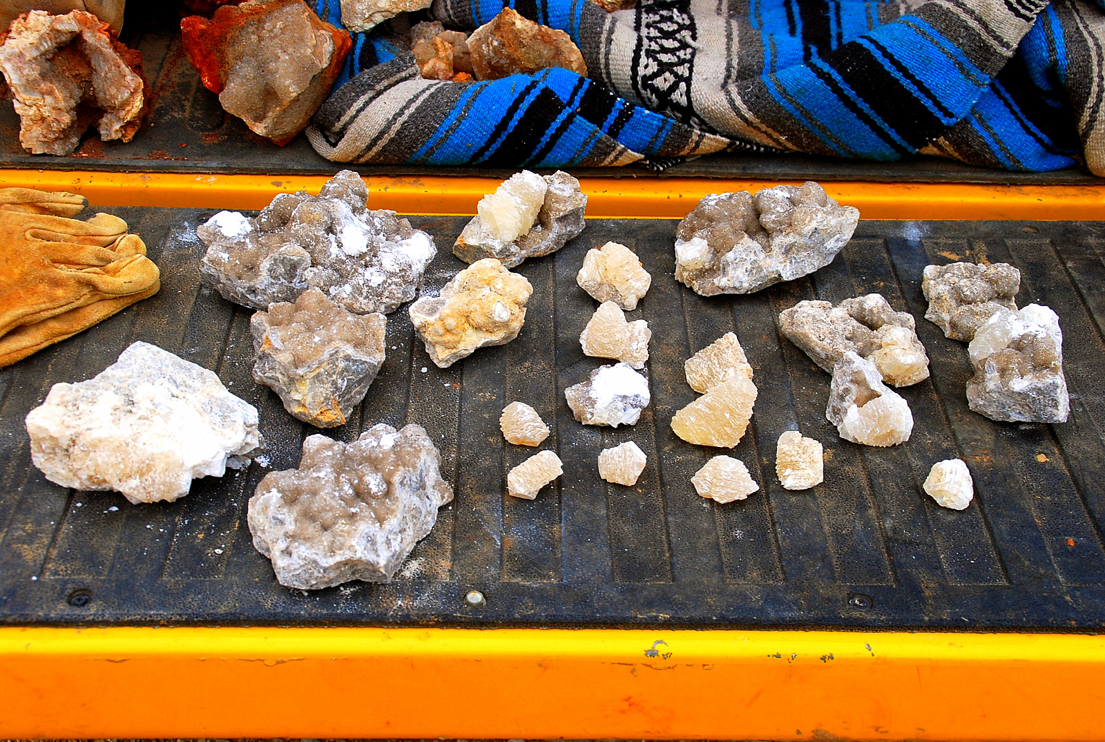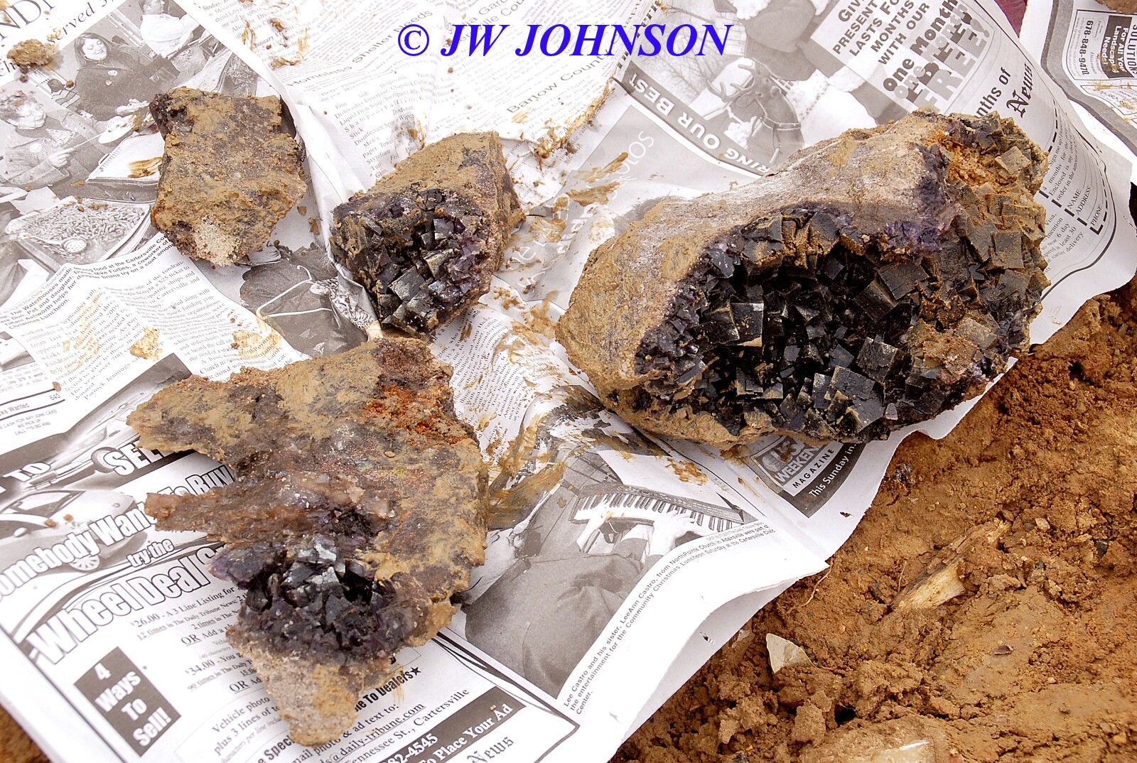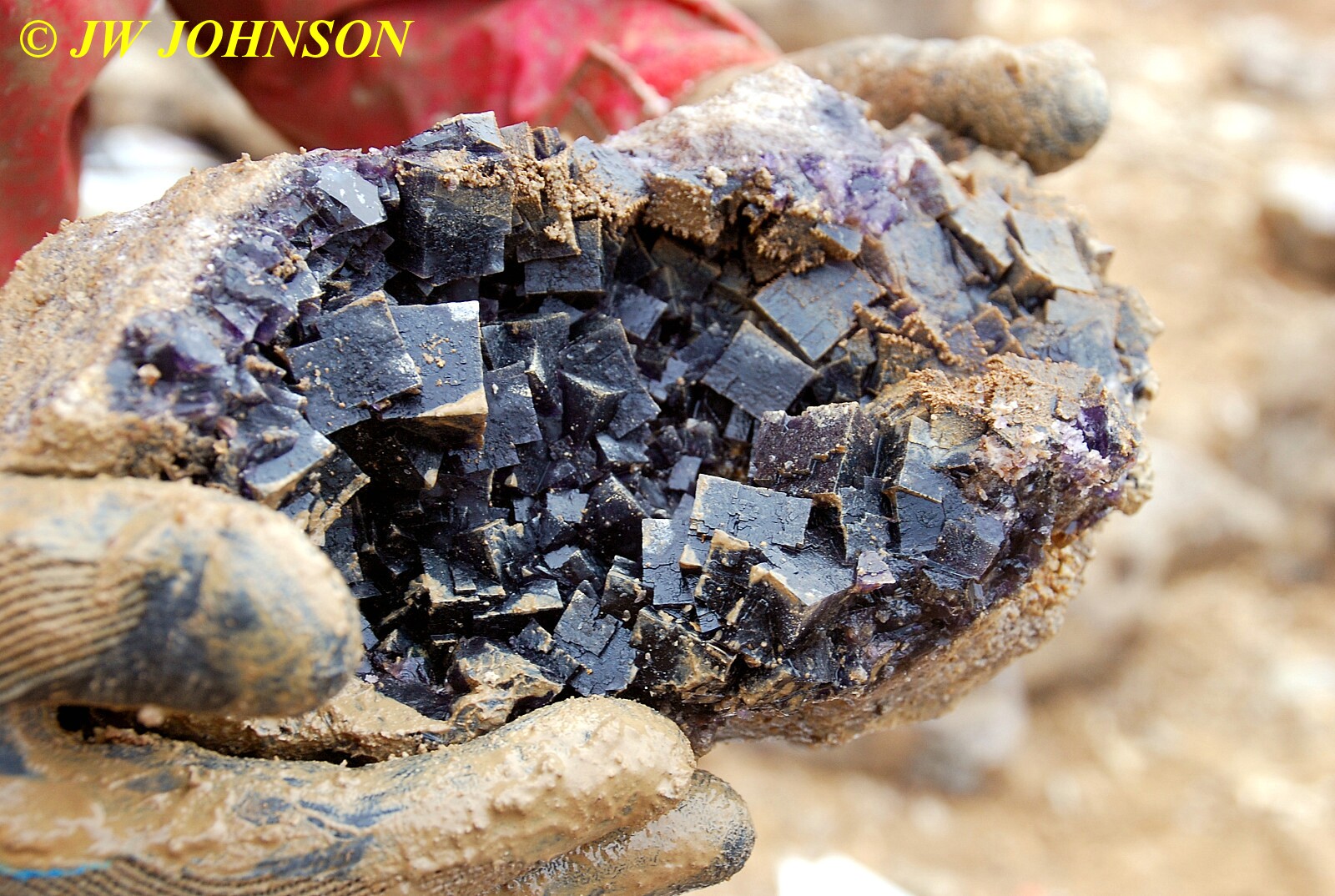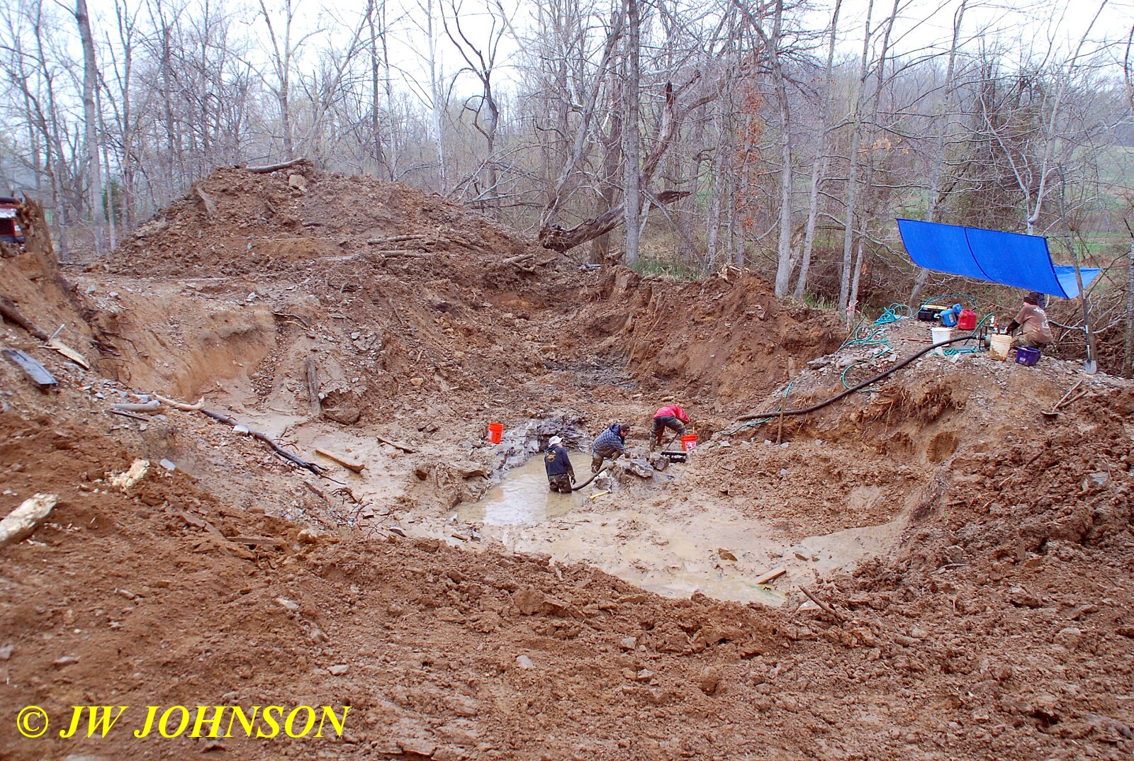 About twenty minutes later, Mr. Crider and his son showed up and fired up the track hoe and bulldozer, and shortly after that, the rest of my crew drove in as well…Mike, Bill, and Thomas from North Carolina, and Jeff from Georgia…having arrived the day before, they were freshly rested up and ready to explore and free more beautiful fluorite crystals from captivity…in other words, we were