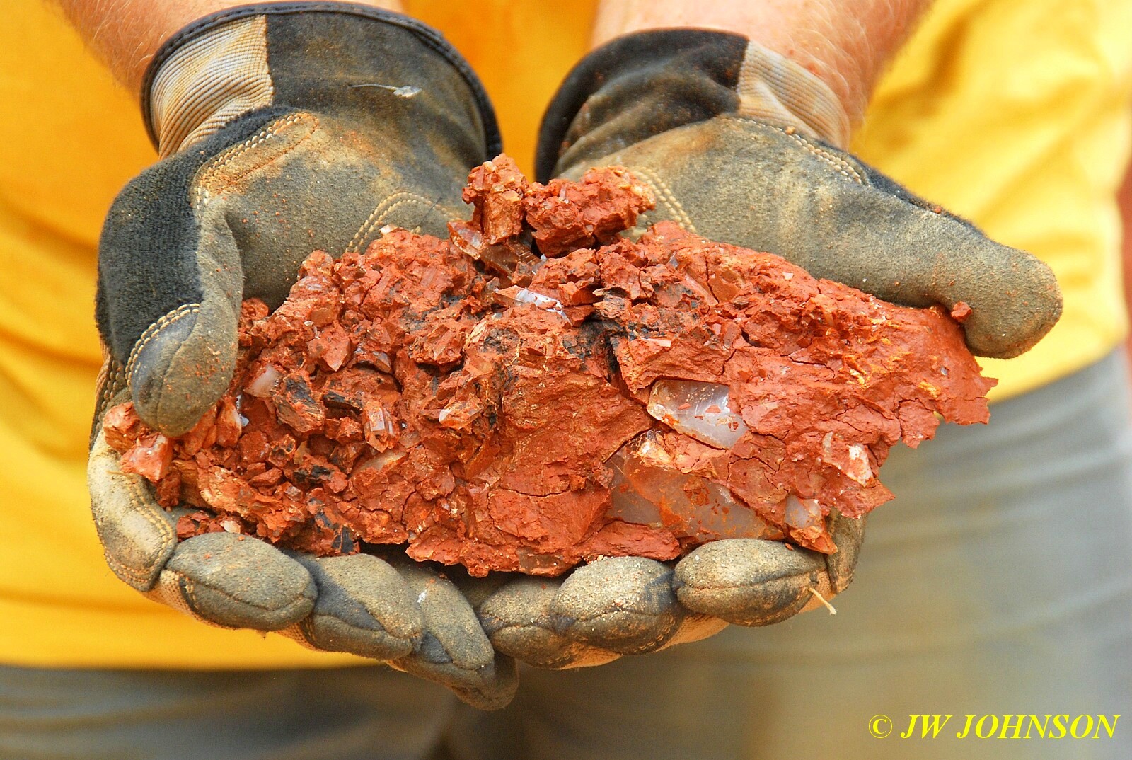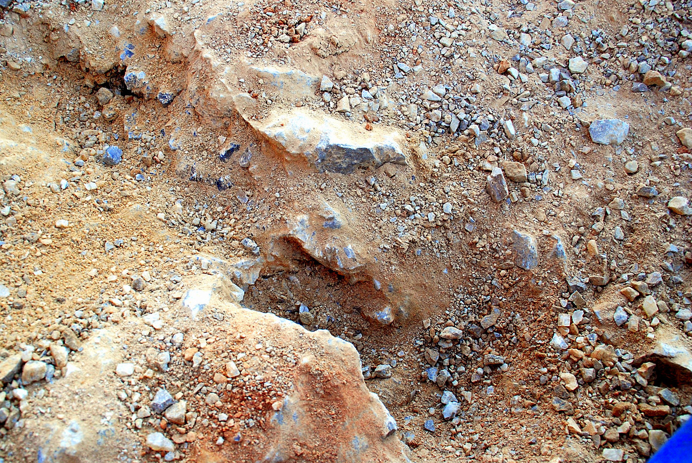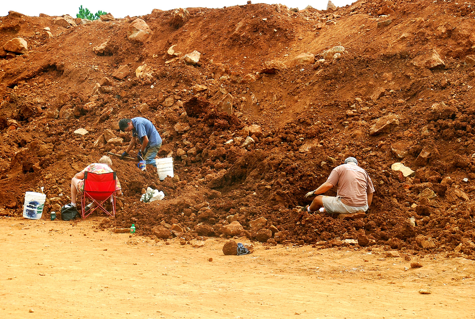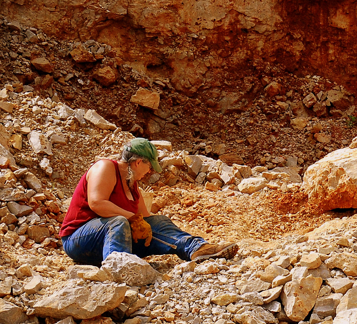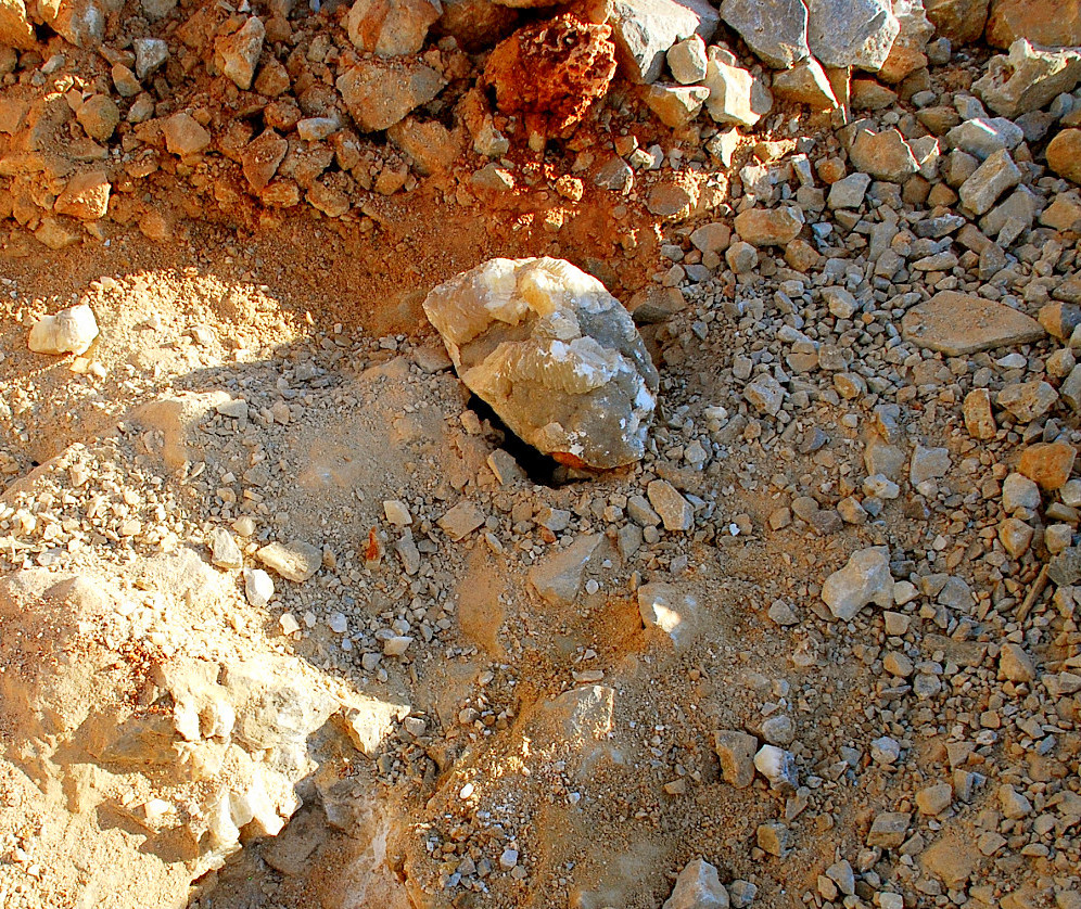 About five or six people decided to try their luck up above and in the flat areas surrounding the pit, but soon found out what I had suspected, the ground was hard as concrete after being flattened, then the sun beating down on it and no rain for two weeks…and after talking with a few of them later, learned that nothing was found in the flat areas…the rest of us fanned out inside the pit area, old and new area alike, and started digging. I had told everyone where they could find the pretty stuff and how to find it as well.