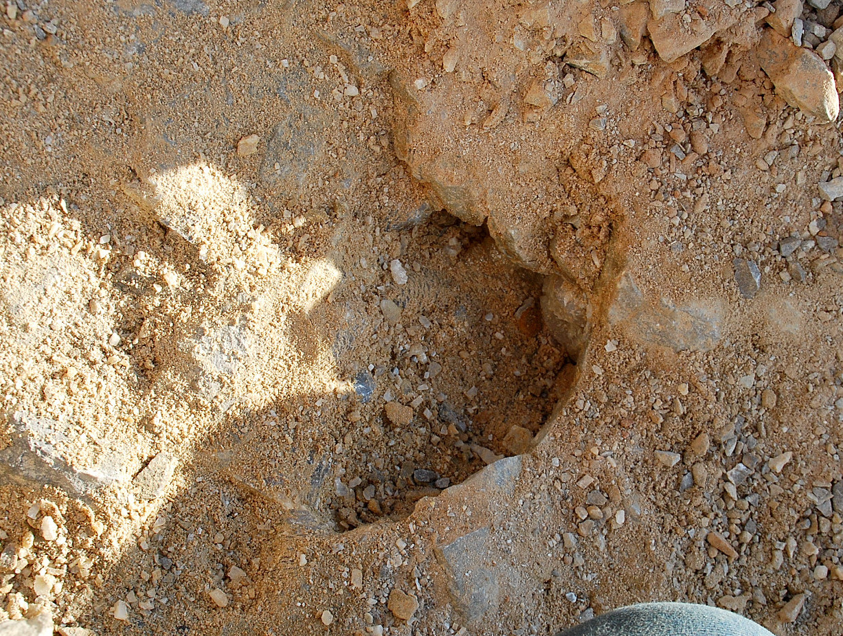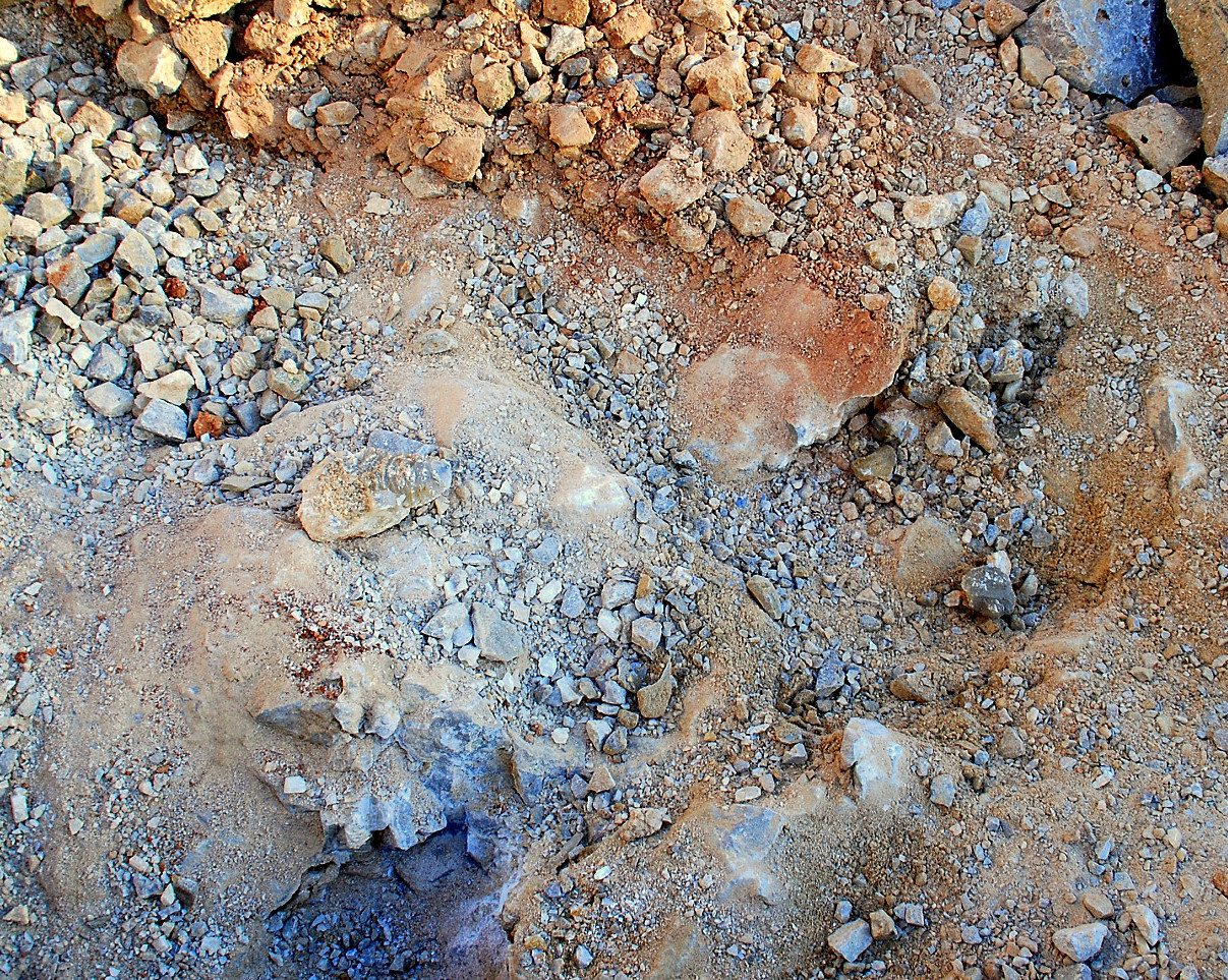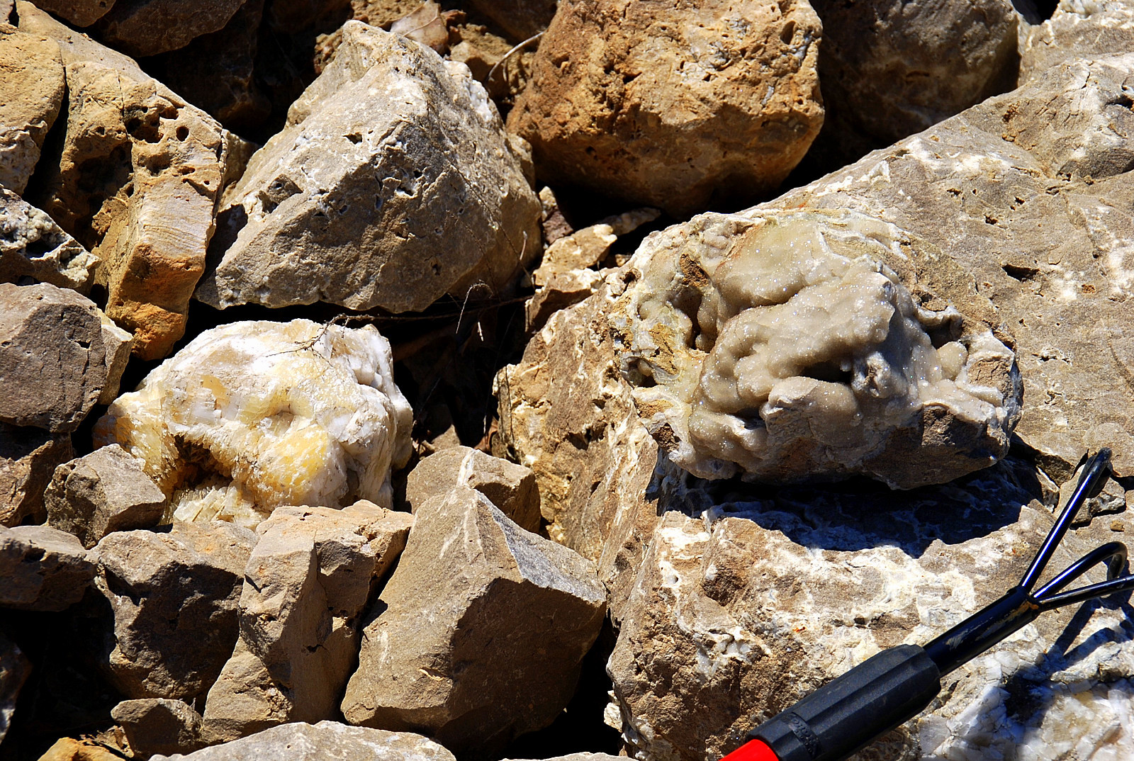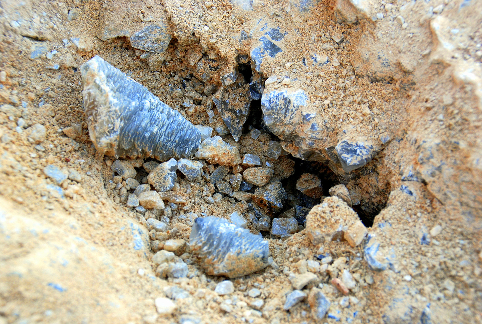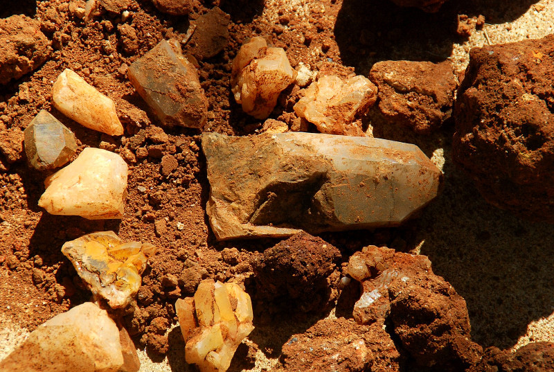 About five or six people decided to try their luck up above and in the flat areas surrounding the pit, but soon found out what I had suspected, the ground was hard as concrete after being flattened, then the sun beating down on it and no rain for two weeks…and after talking with a few of them later, learned that nothing was found in the flat areas…the rest of us fanned out inside the pit area, old and new area alike, and started digging. I had told everyone where they could find the pretty stuff and how to find it as well.