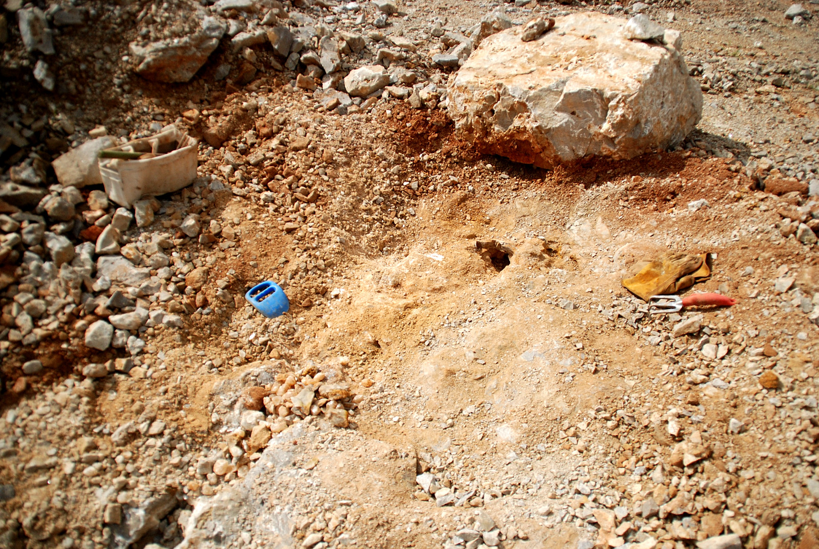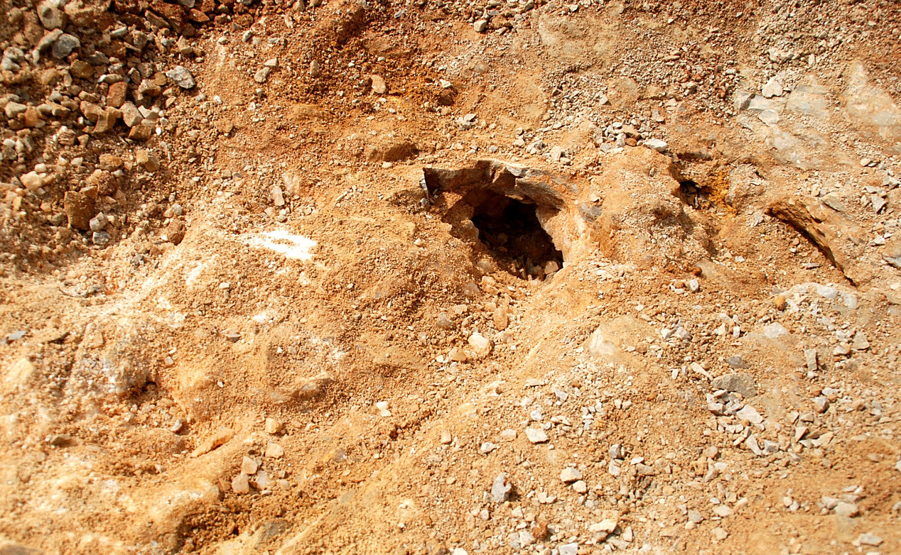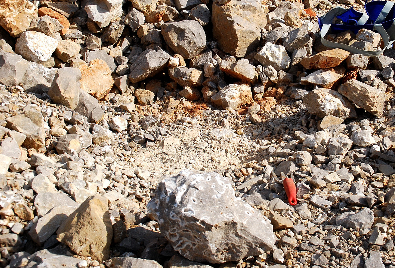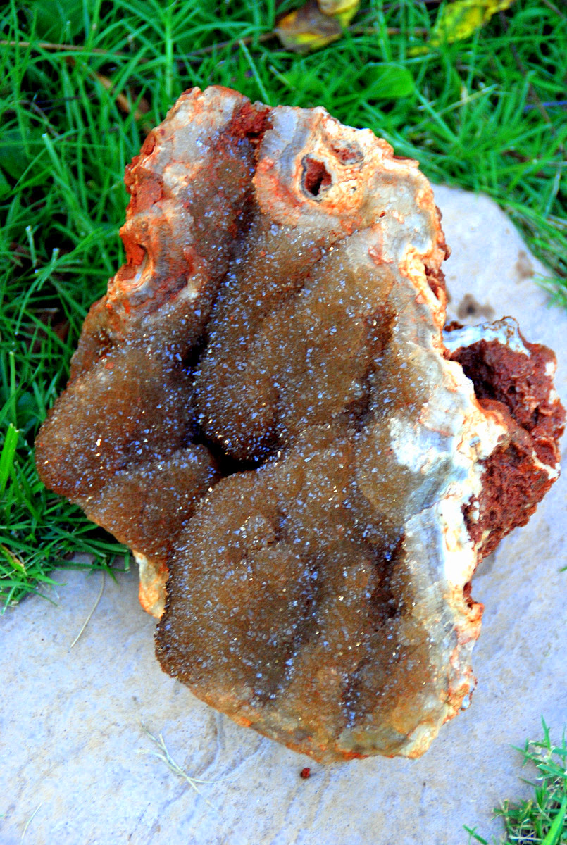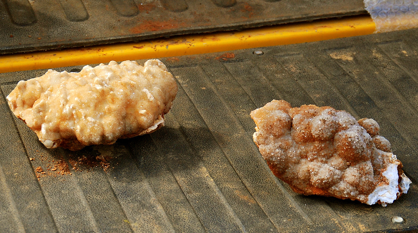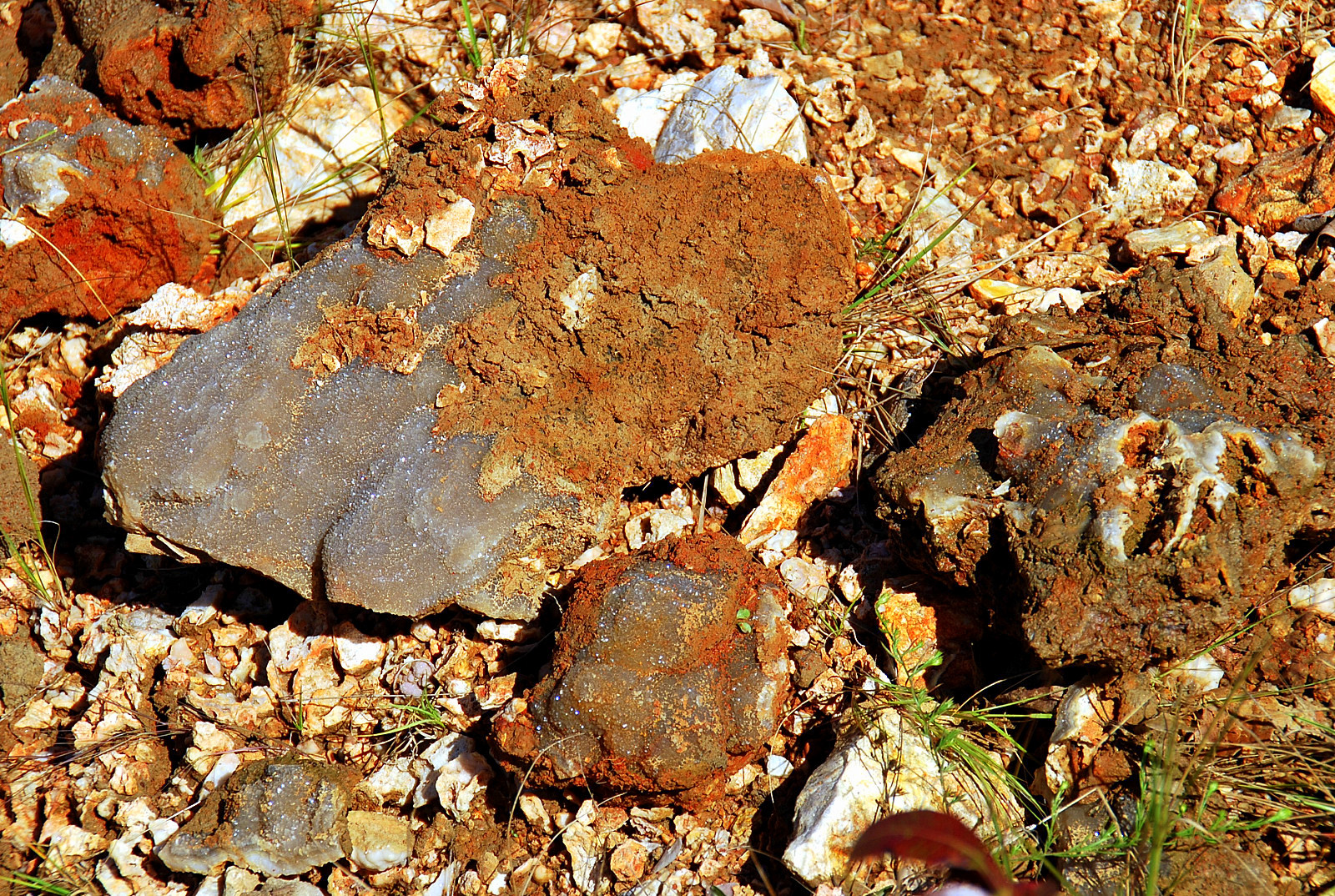 About five or six people decided to try their luck up above and in the flat areas surrounding the pit, but soon found out what I had suspected, the ground was hard as concrete after being flattened, then the sun beating down on it and no rain for two weeks…and after talking with a few of them later, learned that nothing was found in the flat areas…the rest of us fanned out inside the pit area, old and new area alike, and started digging. I had told everyone where they could find the pretty stuff and how to find it as well.