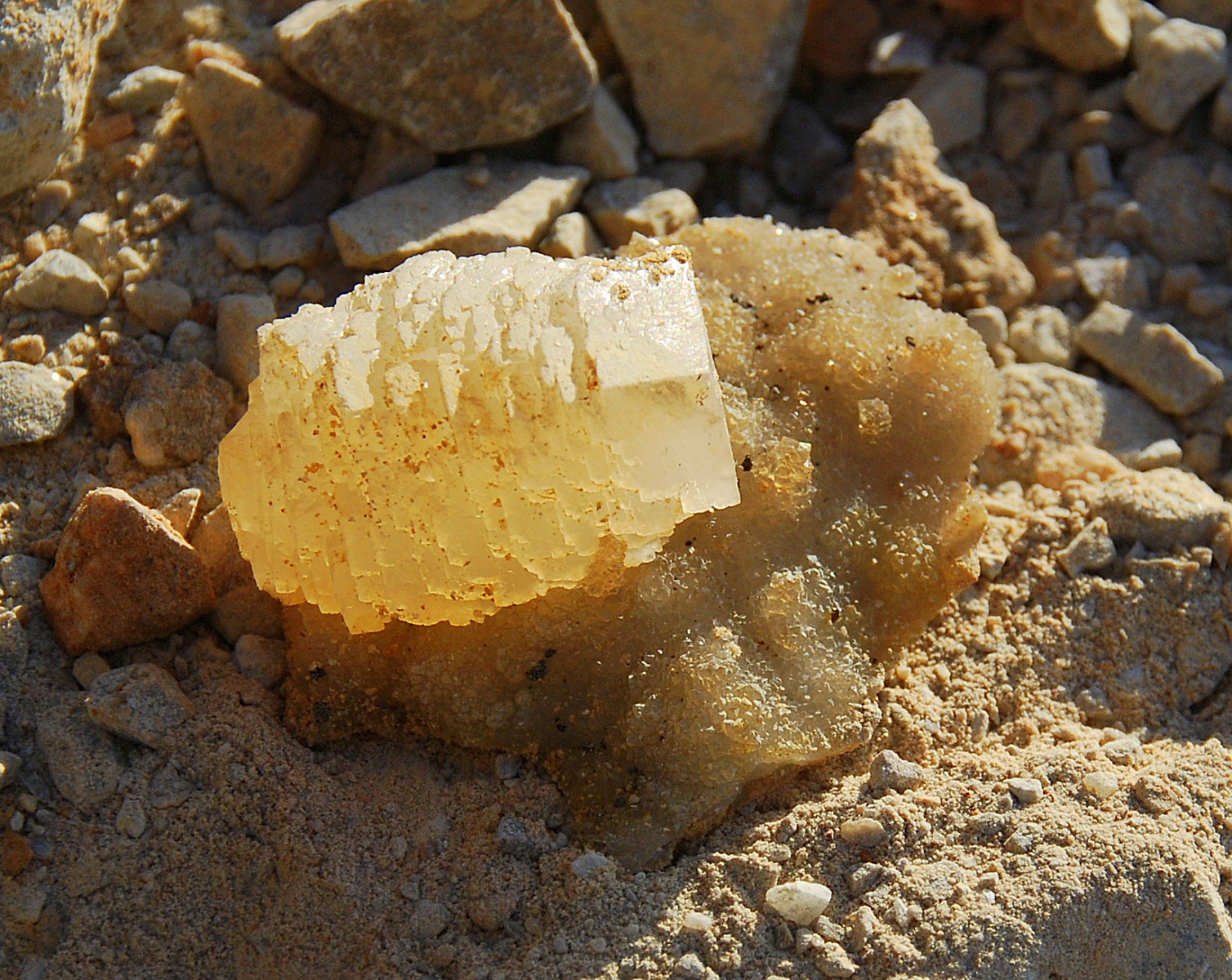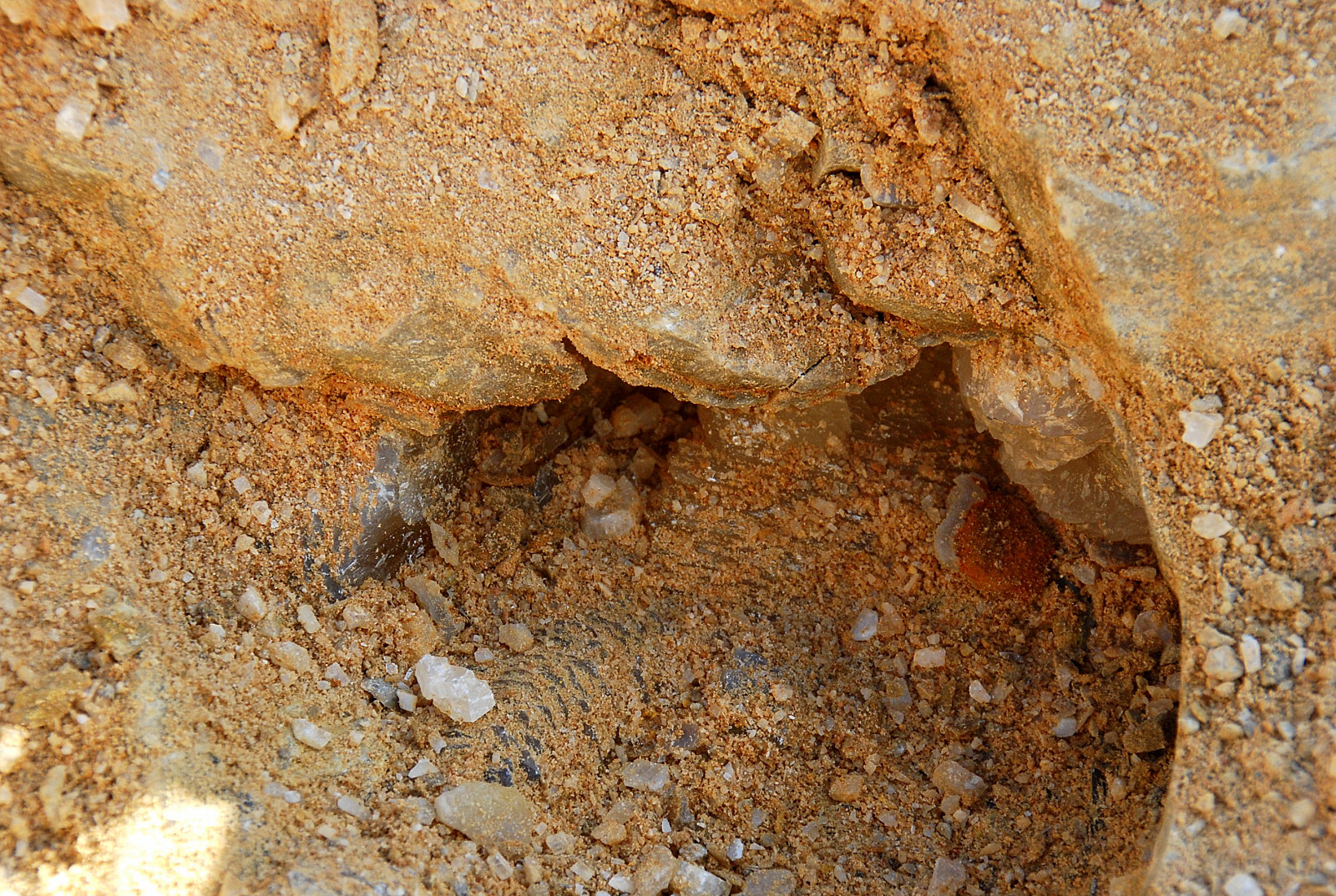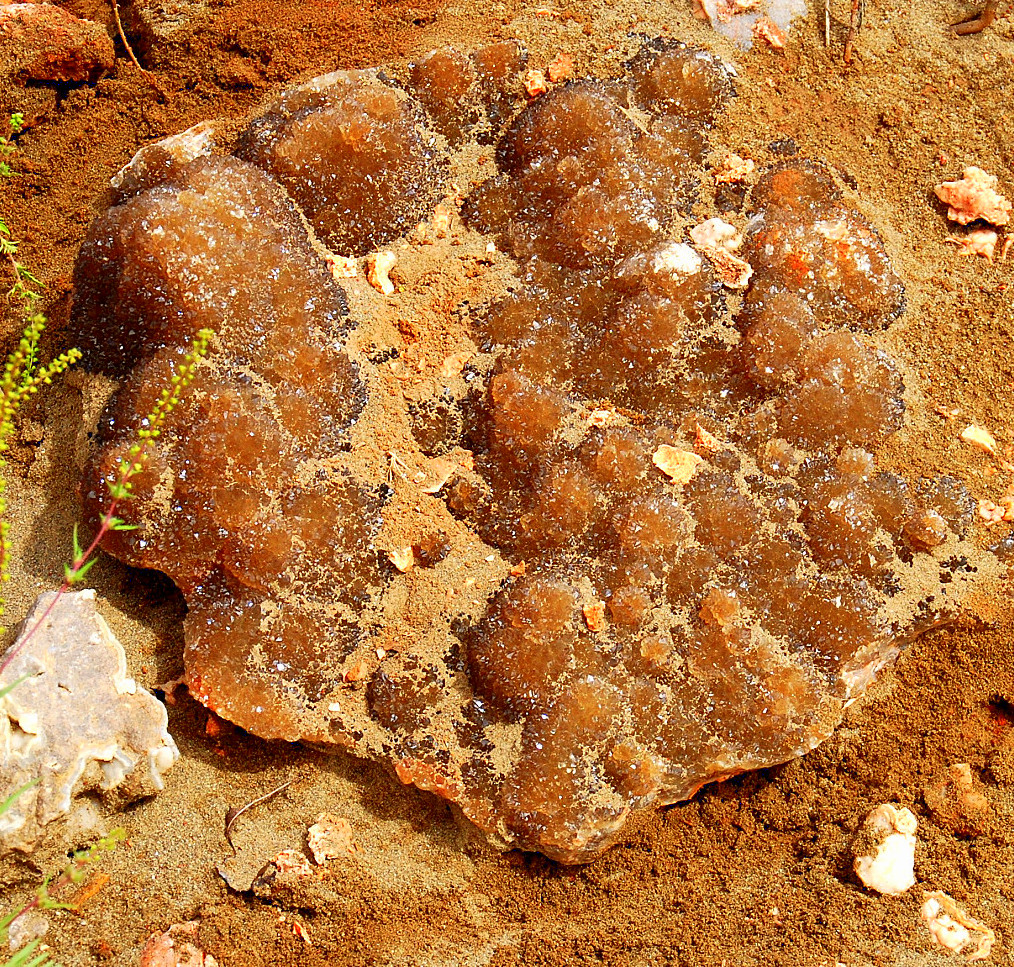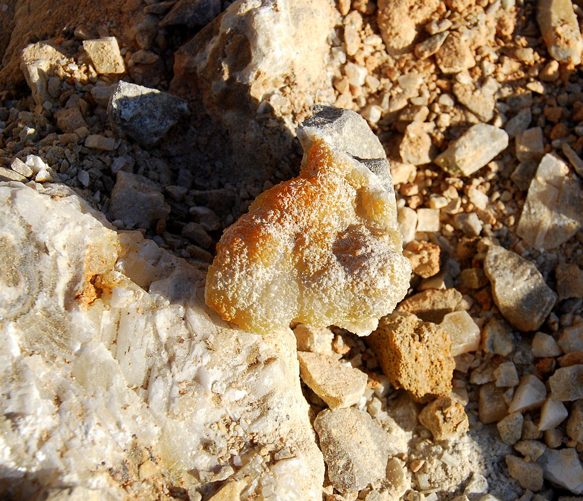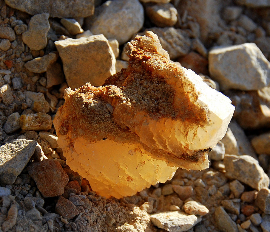 About five or six people decided to try their luck up above and in the flat areas surrounding the pit, but soon found out what I had suspected, the ground was hard as concrete after being flattened, then the sun beating down on it and no rain for two weeks…and after talking with a few of them later, learned that nothing was found in the flat areas…the rest of us fanned out inside the pit area, old and new area alike, and started digging. I had told everyone where they could find the pretty stuff and how to find it as well.