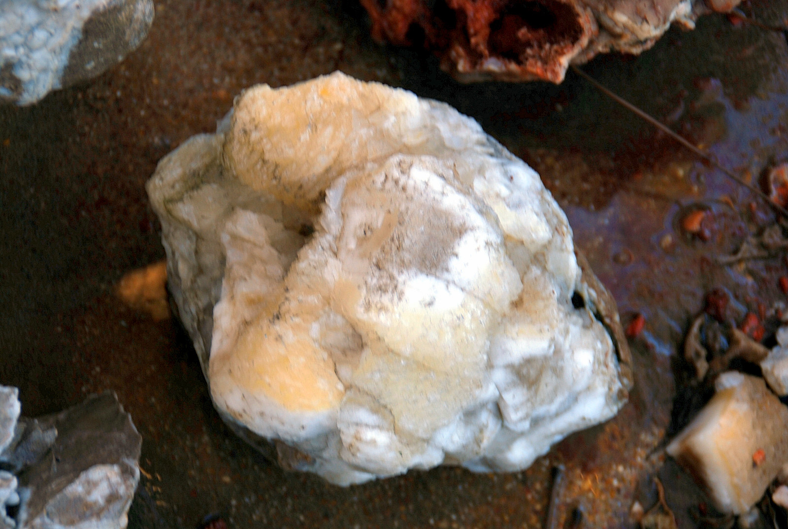 I set up shop near two nice guys from Evansville, Indiana, Bob and Rick, who were working the high bank along the vein near the northwest corner of the pit. I saw where someone had dug in at the bottom and I continued that extension myself and then moved back and reached deep down into the mud and found a few nice pieces
