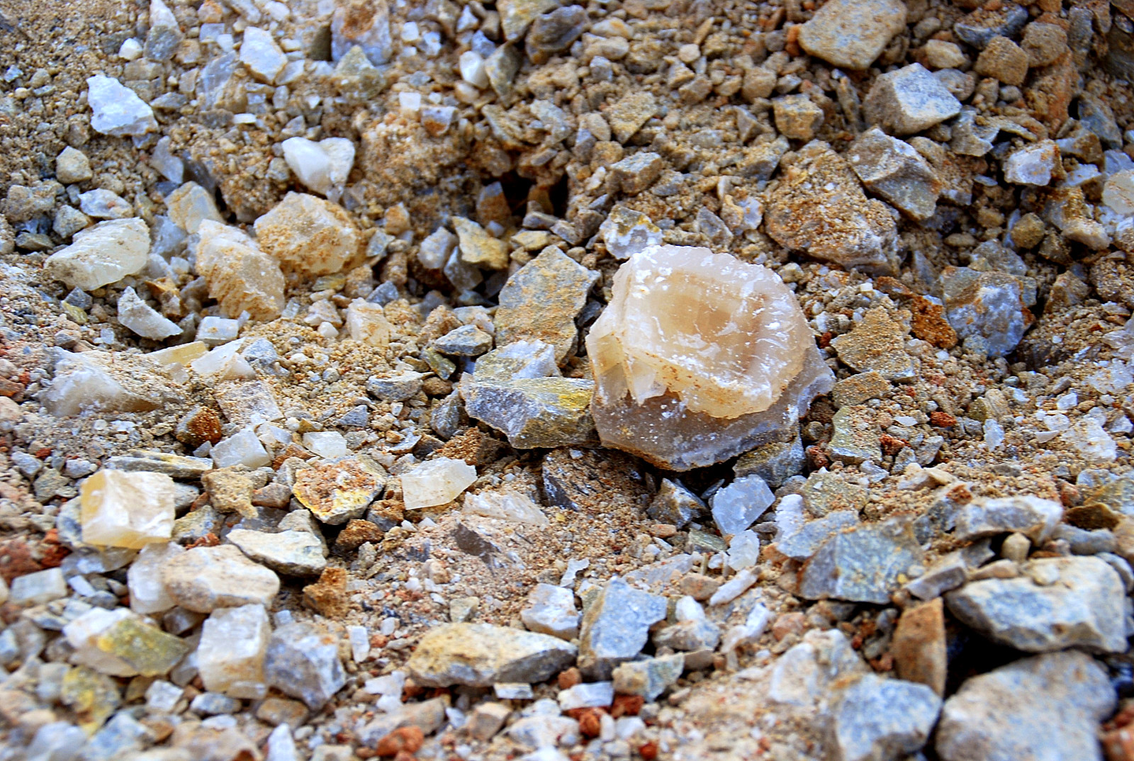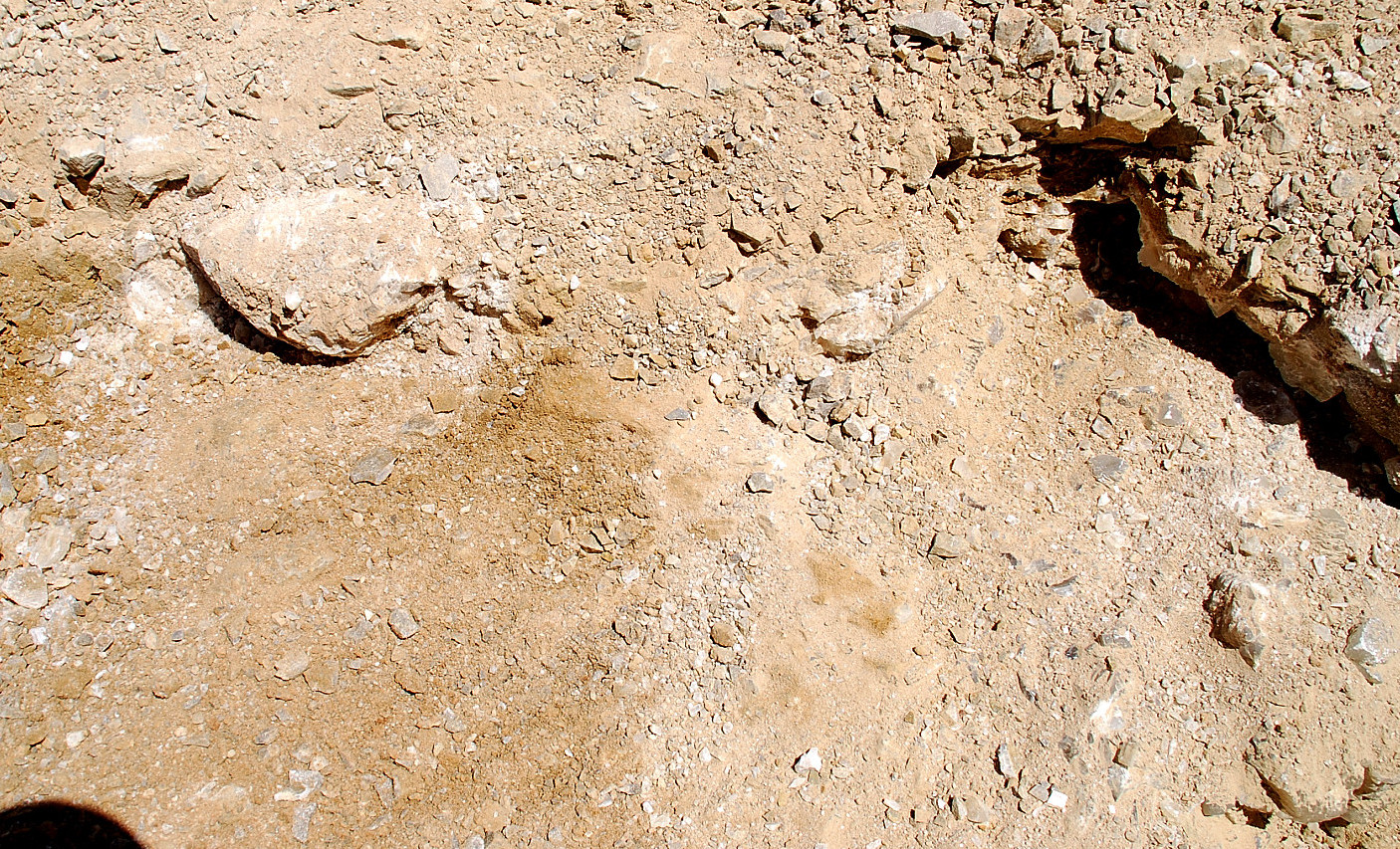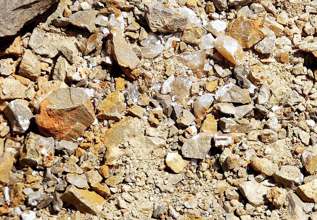 The bare looking spot to the right of the big gray rock, is where I spotted the loose poker chip crystals laying around on top…
