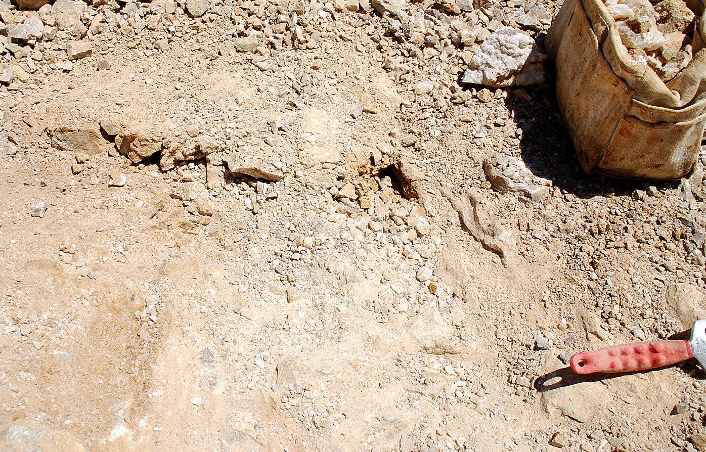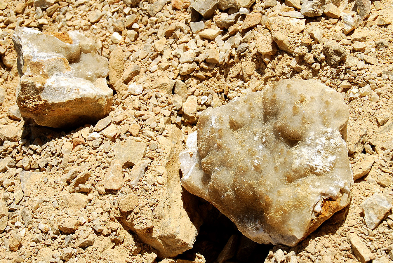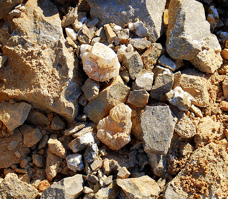 The bare looking spot to the right of the big gray rock, is where I spotted the loose poker chip crystals laying around on top…