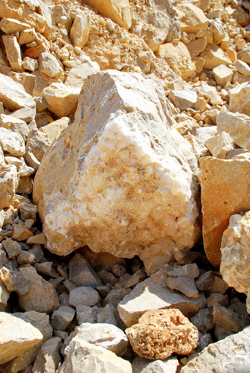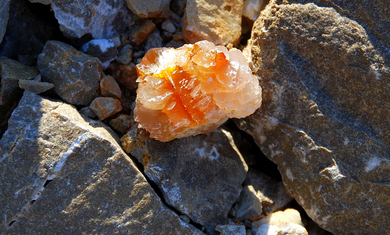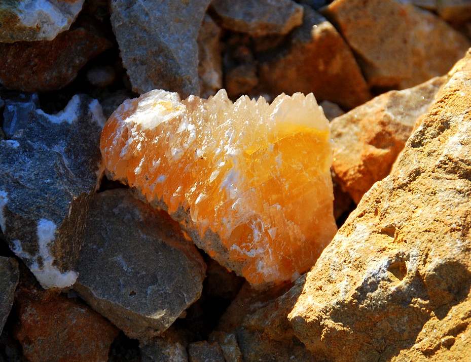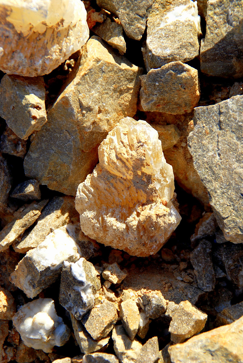 You know it, I liked them both and picked them up and carried them to the truck, gave me a good excuse to get another bottle of water, too…then I came back and was nosing around the other side of the pile again, and besides finding a wasp nest between a few rocks and very quickly smashing it along with the one wasp that came out, I also spotted this pretty lurking between the rocks…