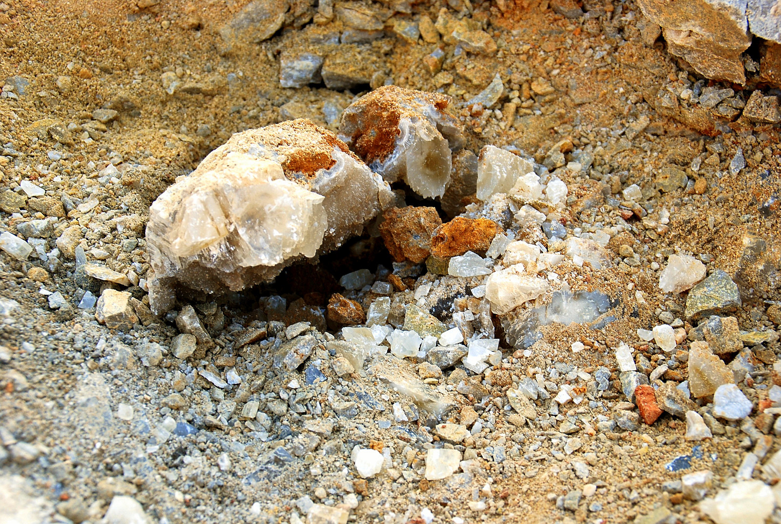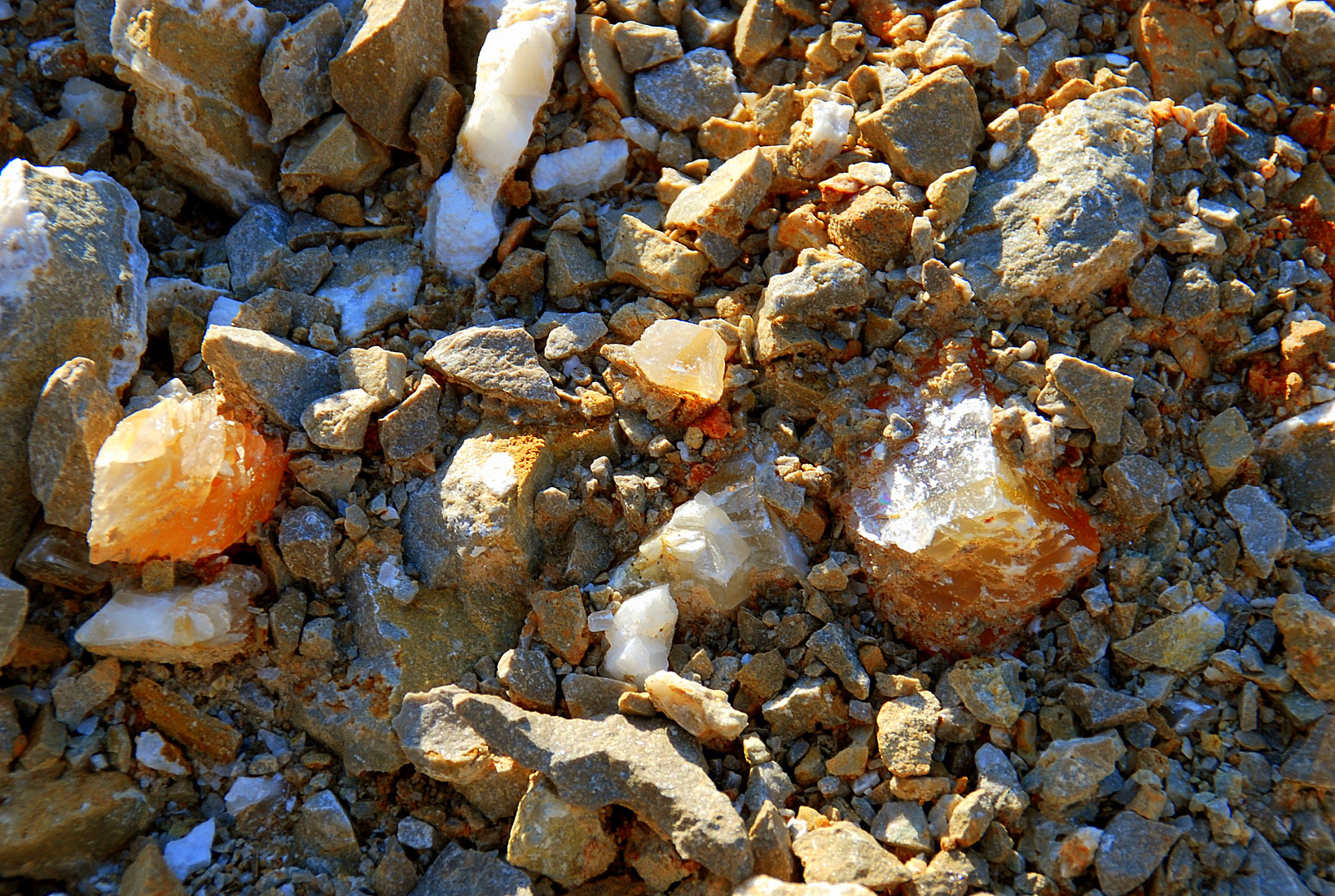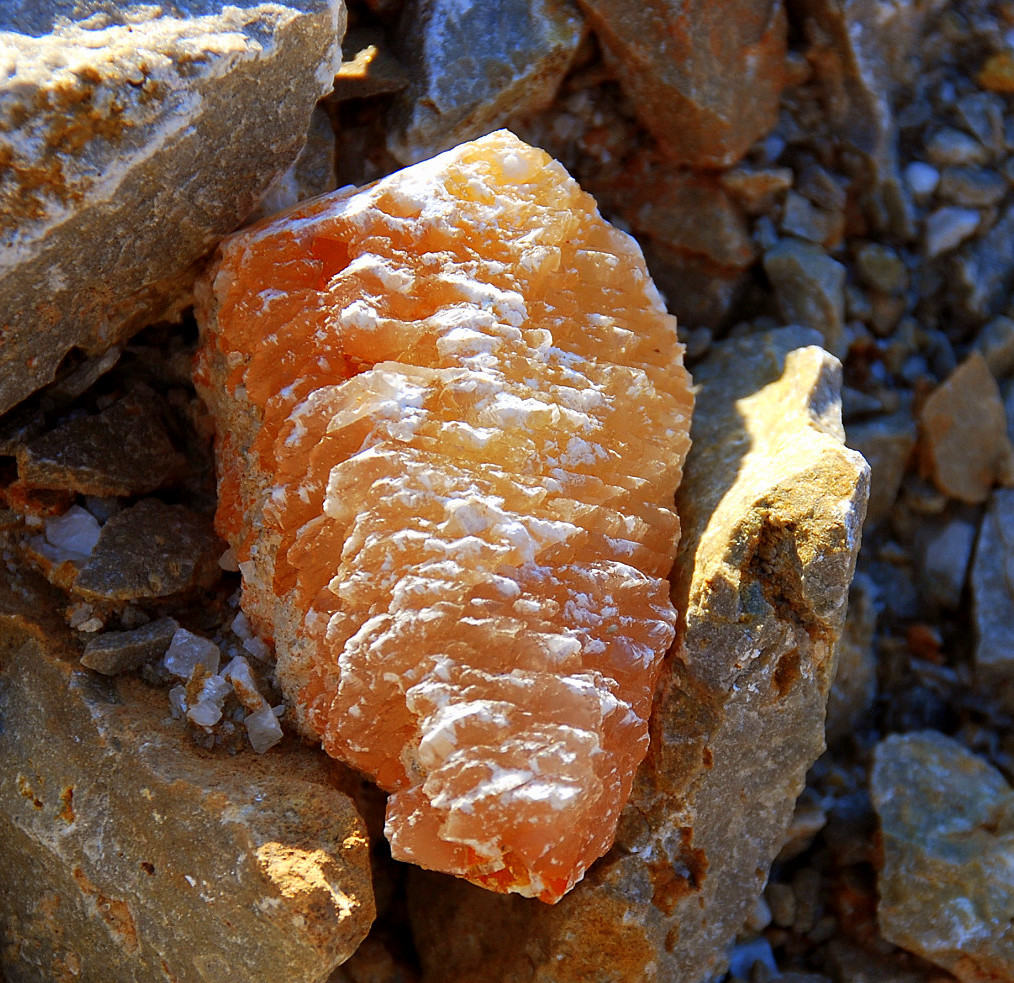 You know it, I liked them both and picked them up and carried them to the truck, gave me a good excuse to get another bottle of water, too…then I came back and was nosing around the other side of the pile again, and besides finding a wasp nest between a few rocks and very quickly smashing it along with the one wasp that came out, I also spotted this pretty lurking between the rocks…