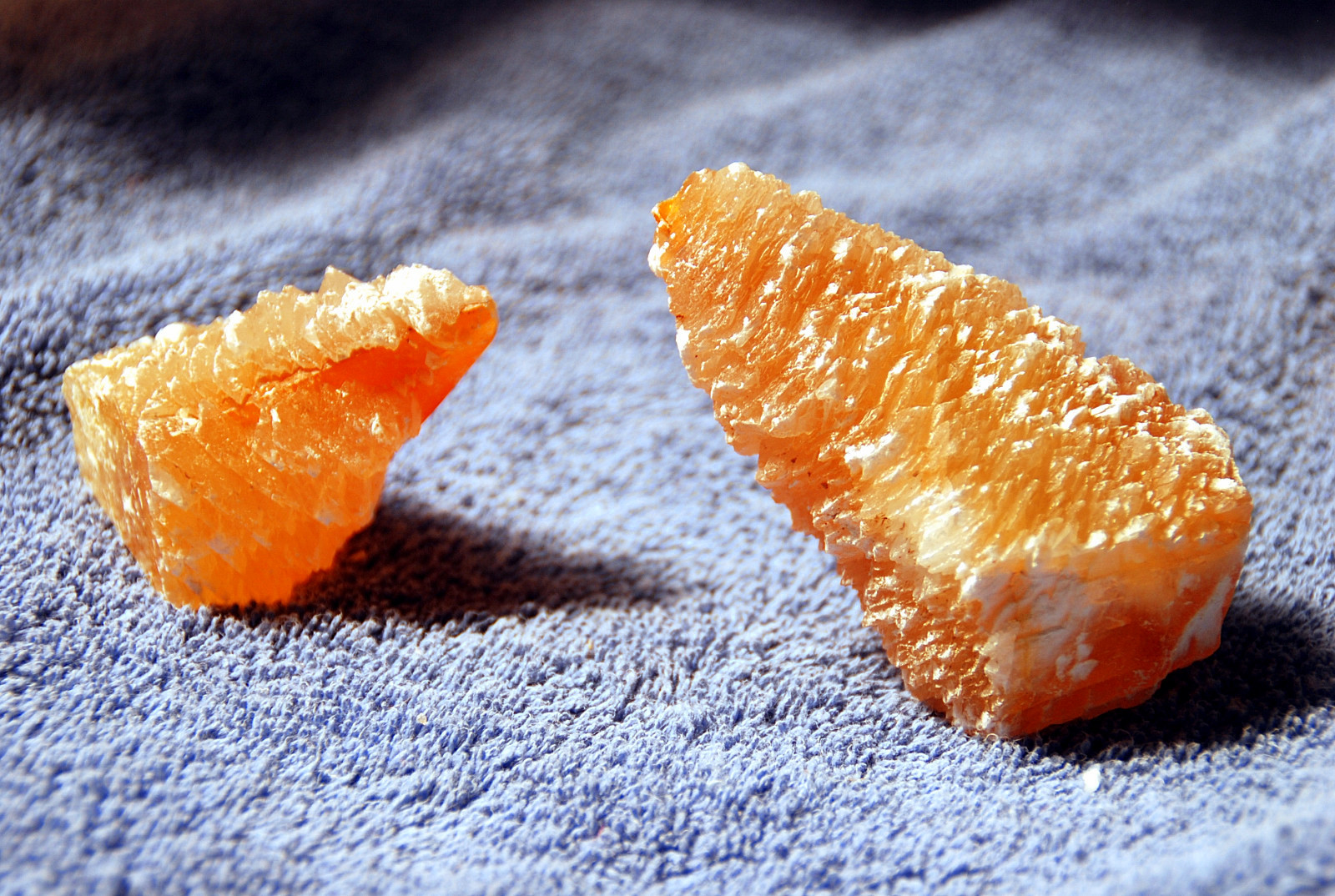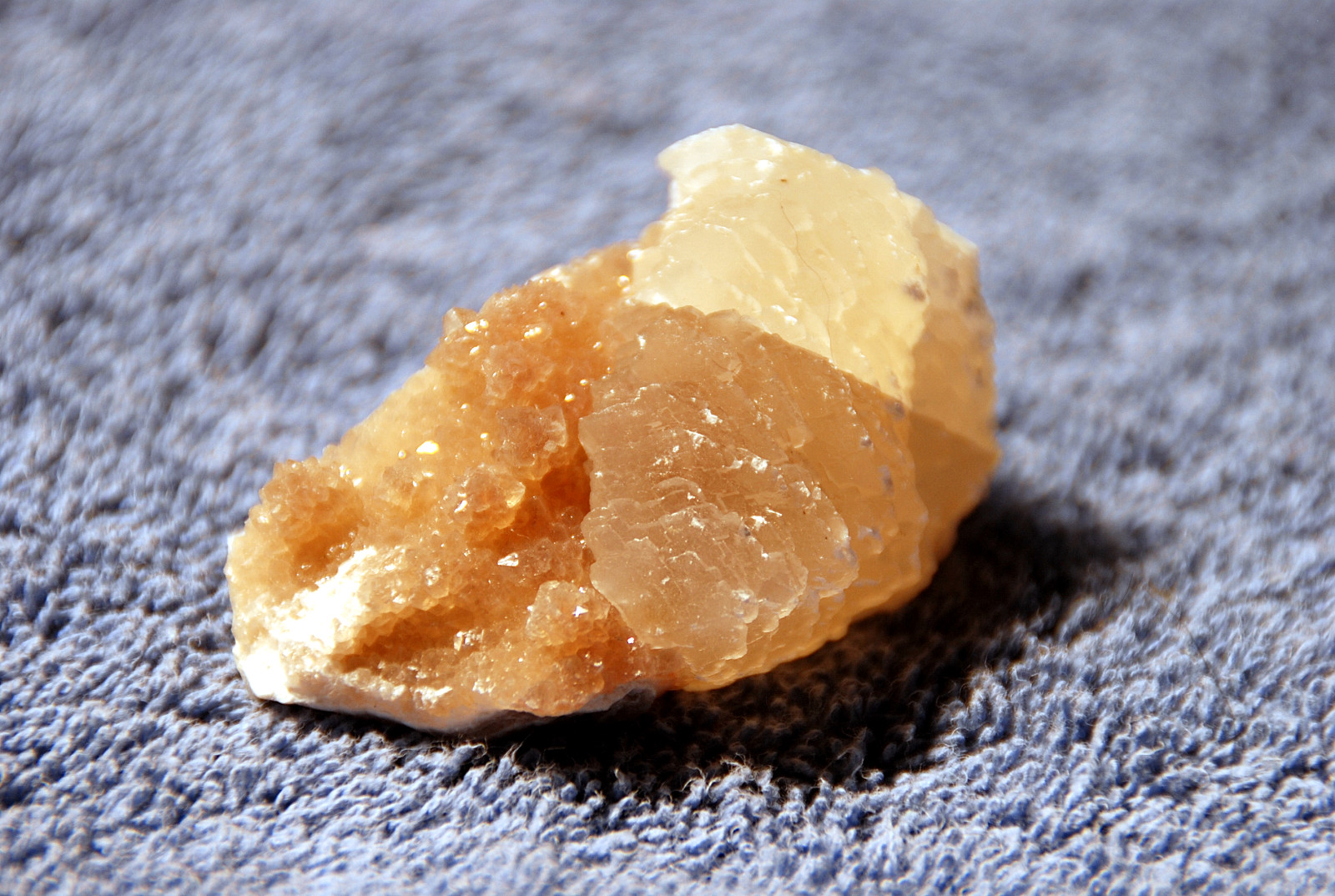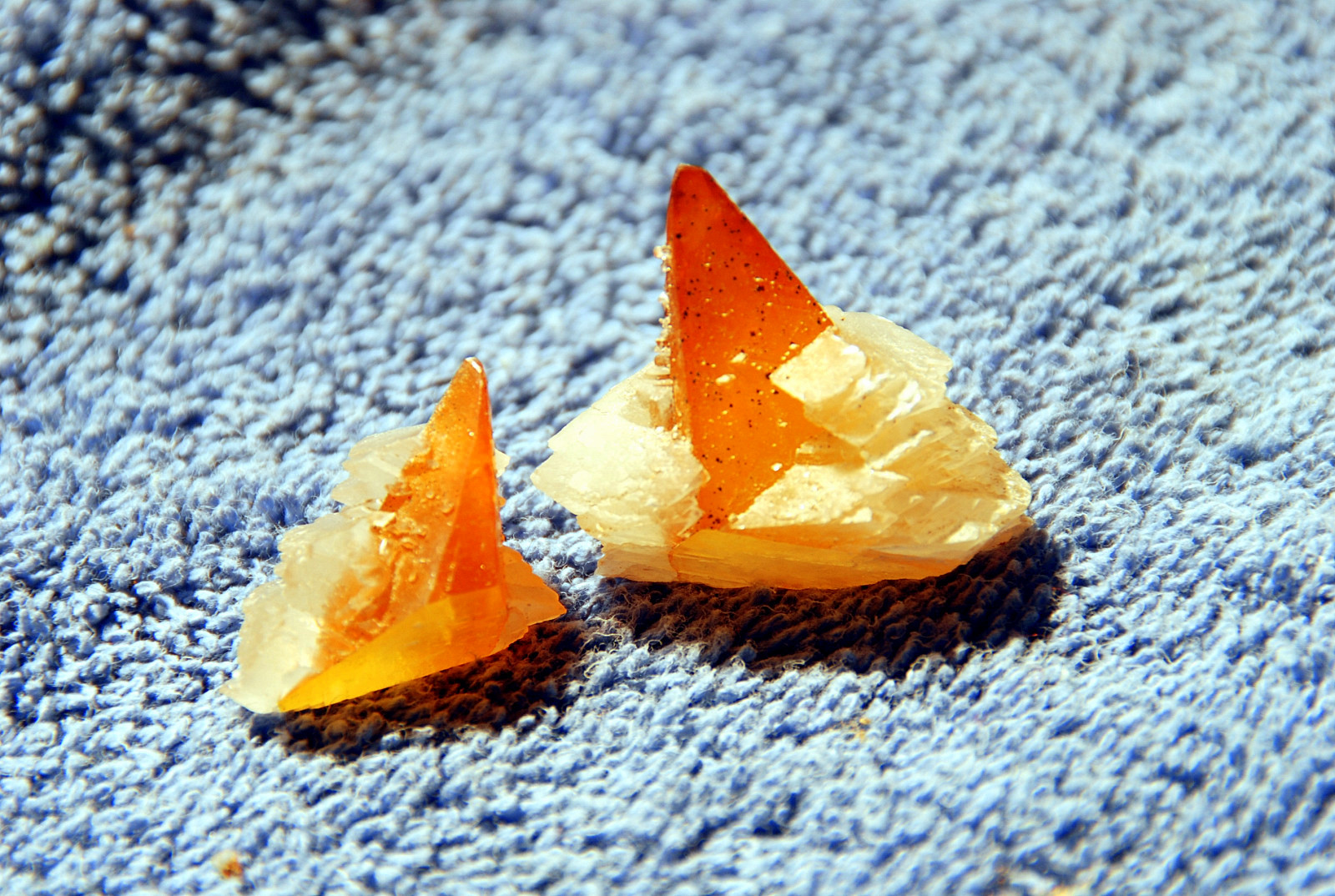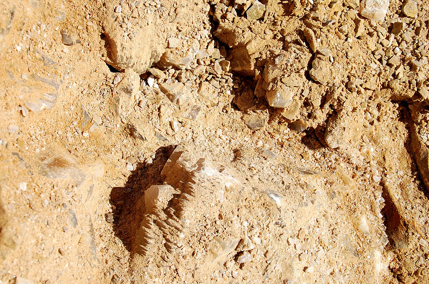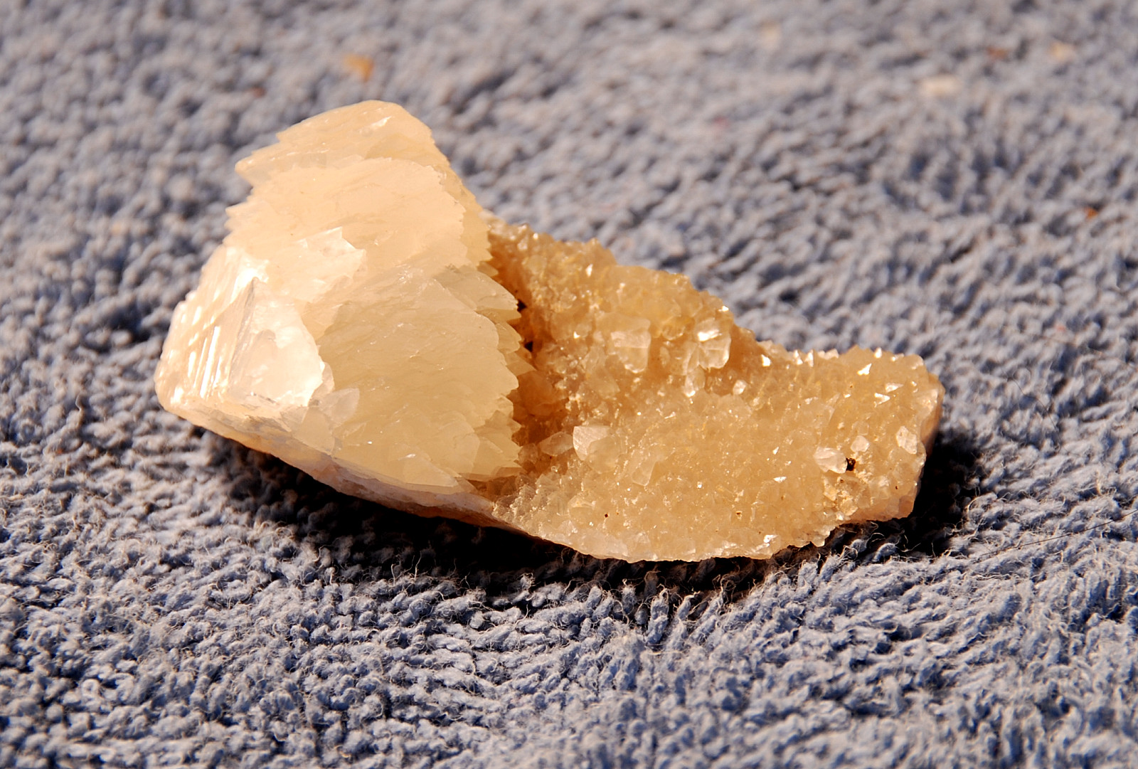 In the area to the left of the bag, I started finding alot of loose crystals again, some that had that honey brown color to them and some little twins and triples too…and some druse crystal plates with poker chips attached to them…and then I saw some large embedded clusters, embedded into the rock below…I was dumbfounded…