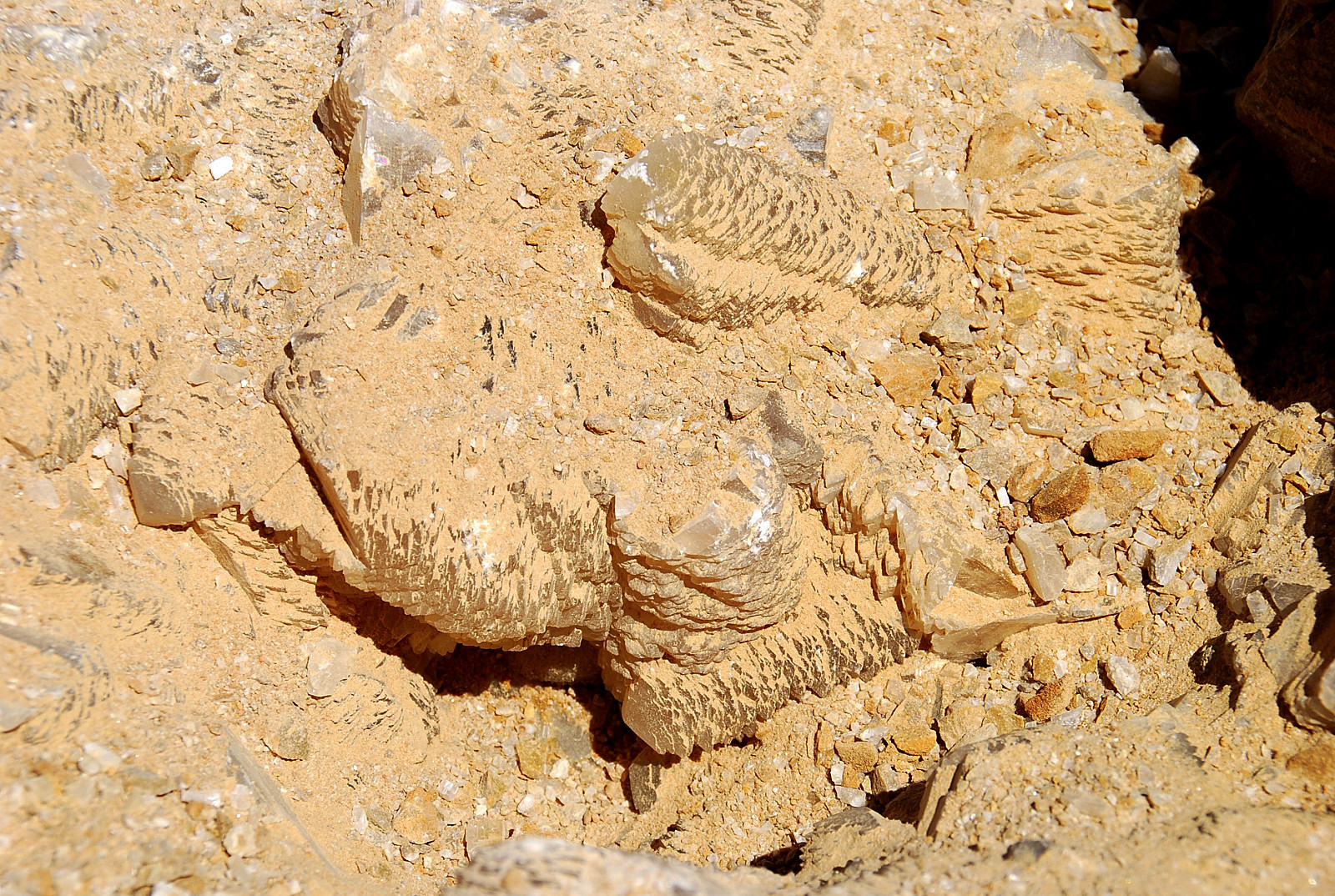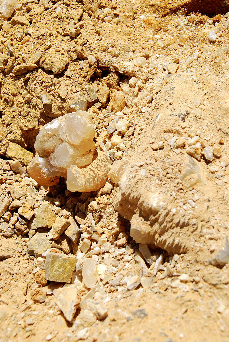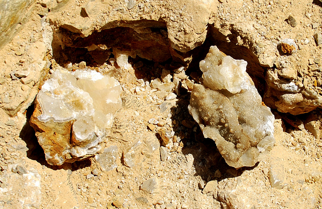 I started digging carefully here and didn`t have to go very far down to start finding loose crystals laying all over the place, but imagine my surprise, pleasant surprise I should say, when I started finding large plates of druse with small soda straws on them as well…not very far down and most were upside down when I first discovered them. As soon as I found the first one, I took a closer look and figured out that they were all over the place right there….