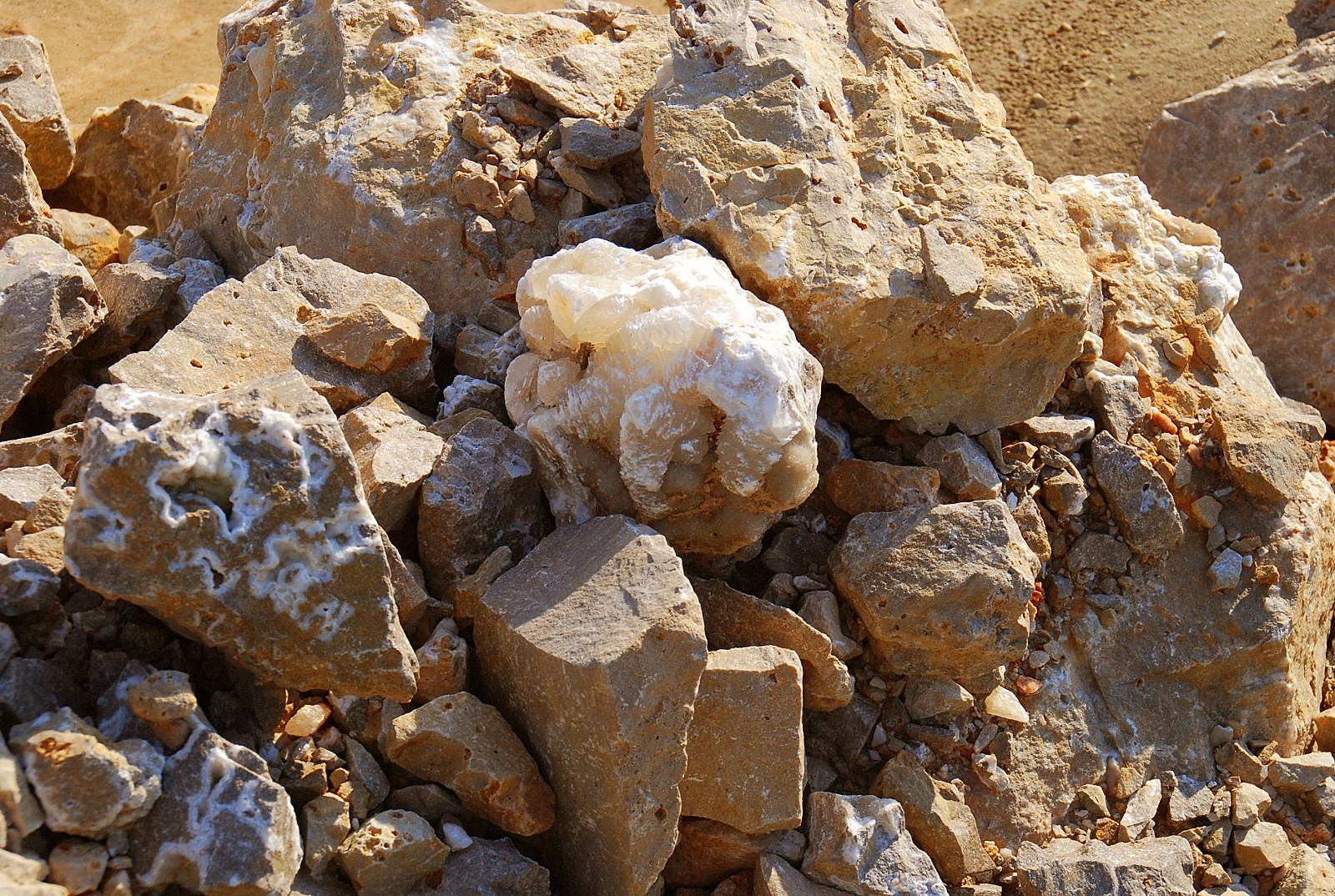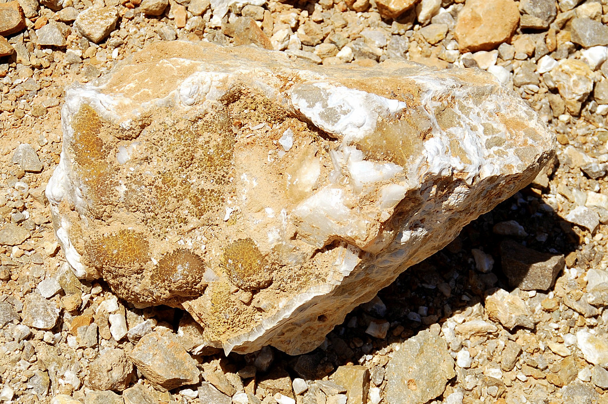 I wanted to take a look at the two large chunks I have had my eye on for a few weeks, and see just how heavy they really are…yes I`m still considering trying to bring them back for a spot in my flower garden…while over there looking them over and rolling them, I found a few smaller chunks that were pretty too…one covered in a yellow druse…..and on the other side of the pile from it, was a chunk of yellow chips on druse…