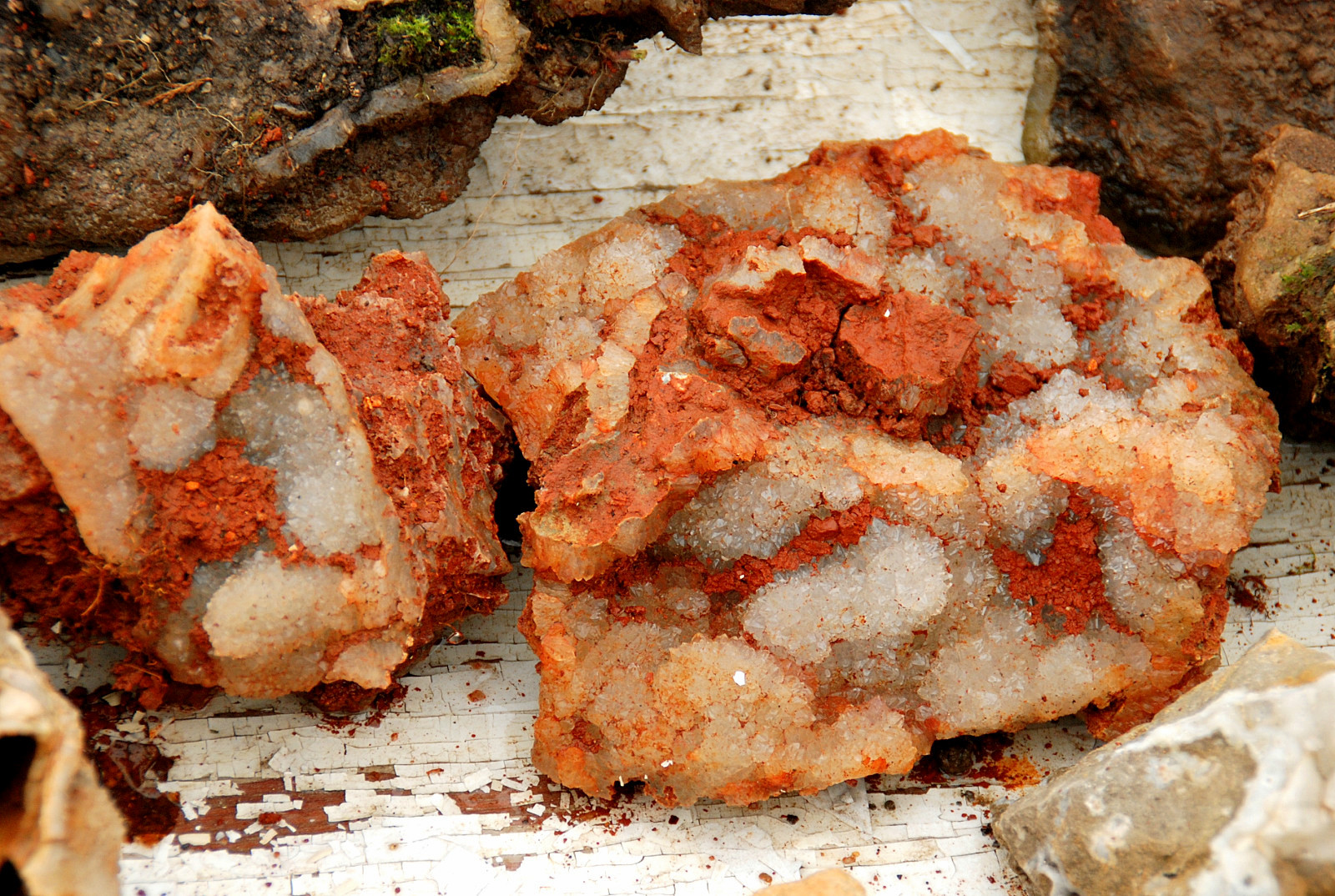 By Thursday, I had firmly started on some allergy/cold medicine and decided to drive back down to Kentucky and help the newcomers find some great fluorite, so I took off mid morning and by 10 am when I stopped to gas up in Festus, the sinus pressure was so bad I felt like I was driving under the influence…had to hold on to the side of my truck for balance… and prayed that if I got pulled over, the police officer would have a clue what sinus pressure was like and how it made one feel…..I had drank some black tea for the caffeine to keep me alert for the five hour drive down there, but in this case, prob mixing with the cough syrup, it gave me even more pressure and one terrible headache as well.