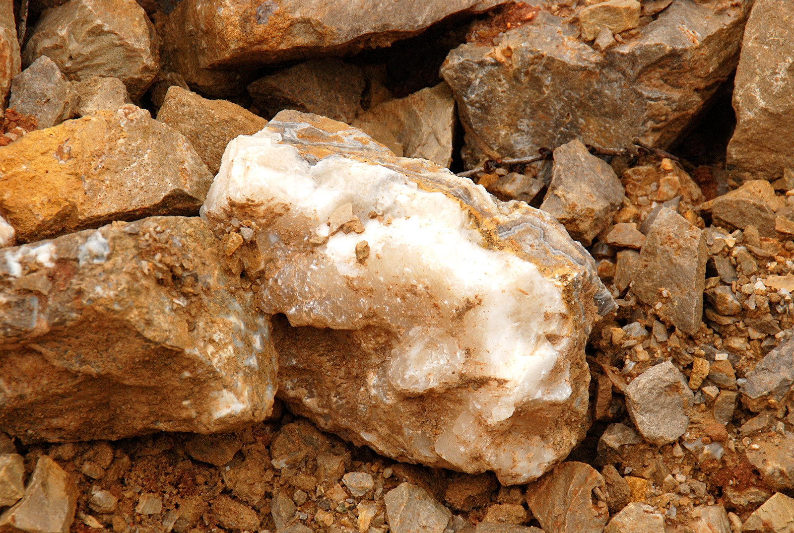 After a short safety talk we drove out to the mine and found Mike Royal from Ohio out there already and getting things ready to dig. Mike had been there a day before and was a newcomer to the McRocks group. After pointing out the piles and the material left behind, everyone began circulating around and checking things out on their own.