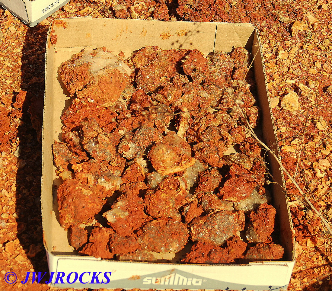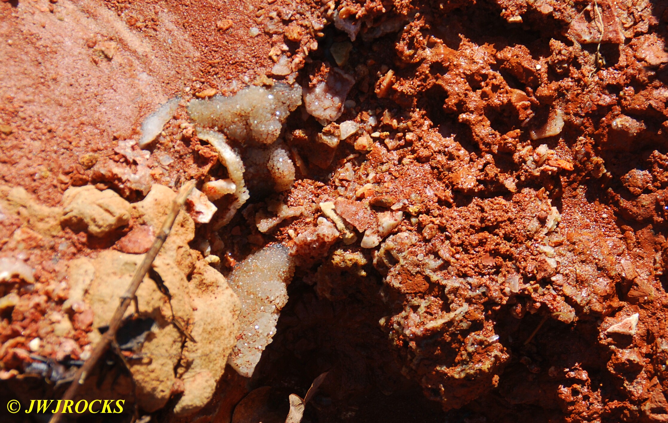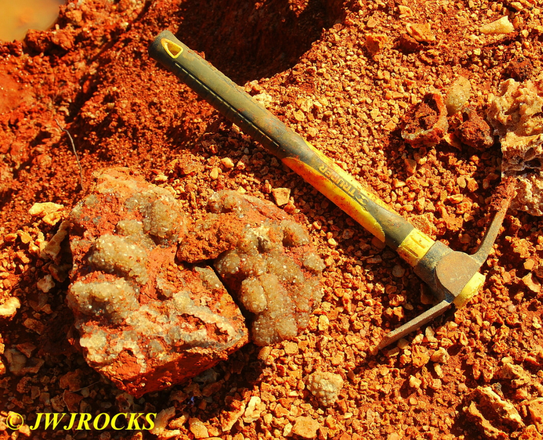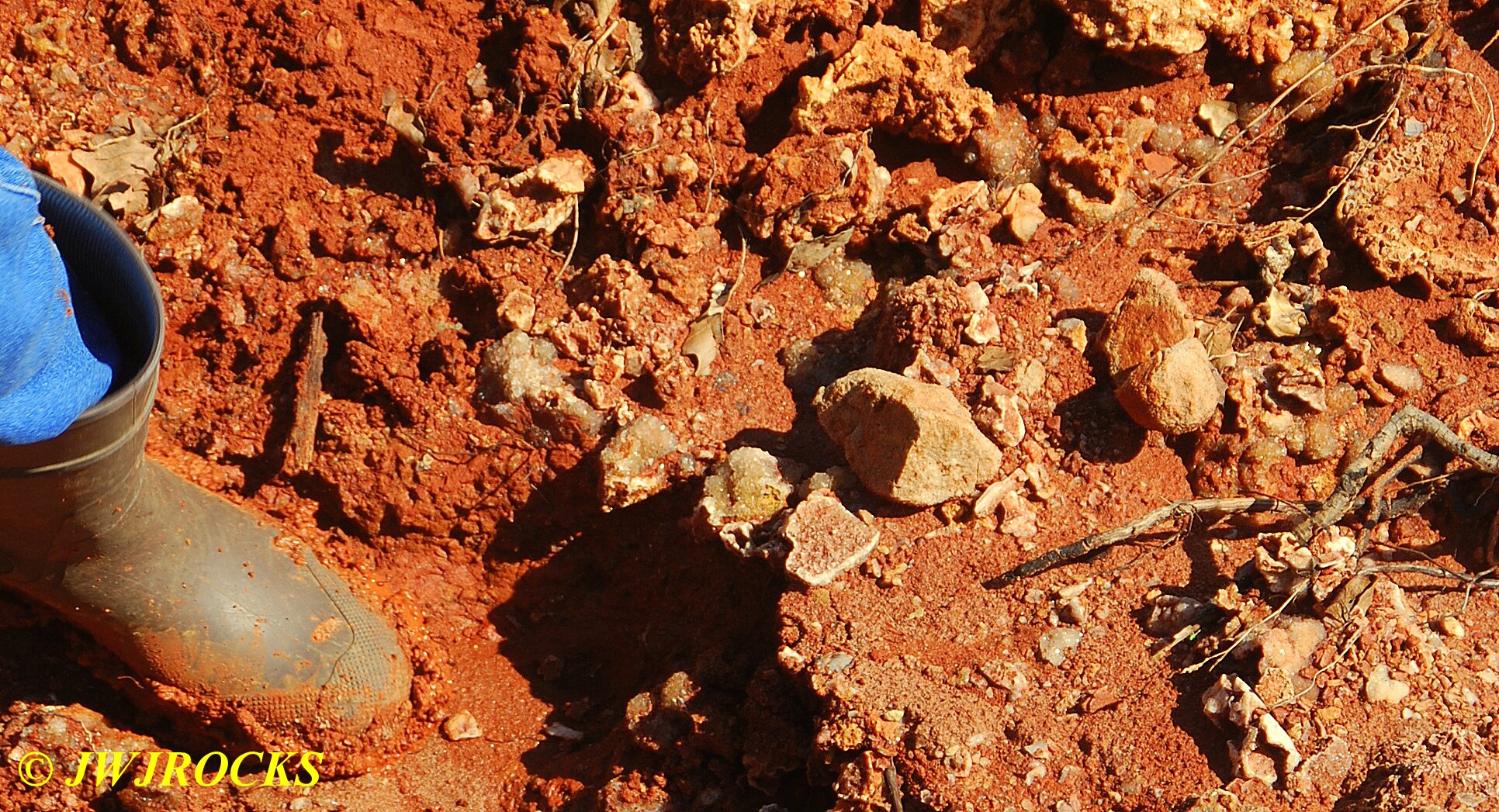 The depth of the druse quartz here is at least 30 to 40 feet in most places, there is a pit in the middle of the field next to the big lake, that is at least 40 feet deep and druse was found all the way to the bottom of it before it was filled in four years ago.