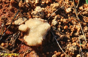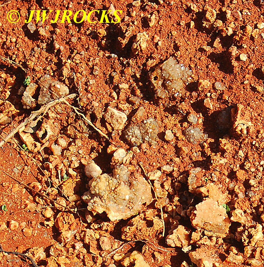 He showed me the boundaries, completely fenced in and we walked the barren field by the big lake….see photos above… which was pretty much covered in multiple colors, shapes, and sizes of pristine and clean druse quartz…..colors found here include golden brown, honey, white, yellow, green, red, orange, and blue….as well as black, smokey, pink, and purple….for those interested in making jewelry, can find a lot of druse quartz buttons here in many sizes as well as some sugar druse pieces….