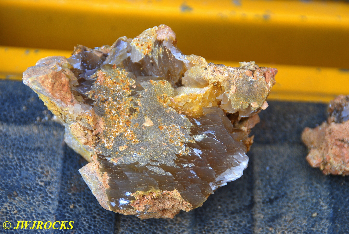 About a year ago, Greg acquired a medium sized trackhoe and began digging on his farm, discovering a whole hillside of root beer druse quartz, he dug out several pits to make it easier on rockhounds to reach the plates of root beer and several large plates have been dug out from those pits now. I remember telling Greg that one day his place would become so popular that he would have to retire from his dayjob of managing a truck company…he thought I was joking, but found out I was right. Haunted Ridge has become their full time daily job now, and that is how they run it, with the help of family and friends, too. You can find them on Facebook with their own page now…Haunted Ridge Rocks.