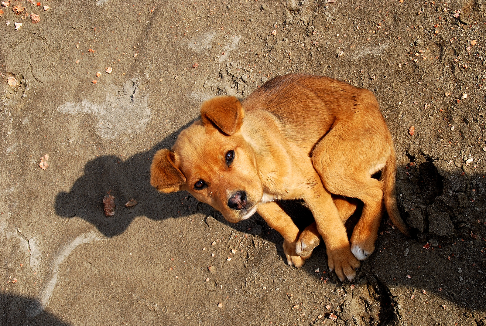 …what a cute little guy was sitting by my truck talking to Missy….so little I almost didnt see him even…and a bit malnourished…looked like he hadnt been fed in a while…what a time to be out there with no food. I had a spare bottle of water tho, so I pulled a bowl out of the cab and poured it in and boy did he start lapping it up…confirming my suspicions that he was very hungry…