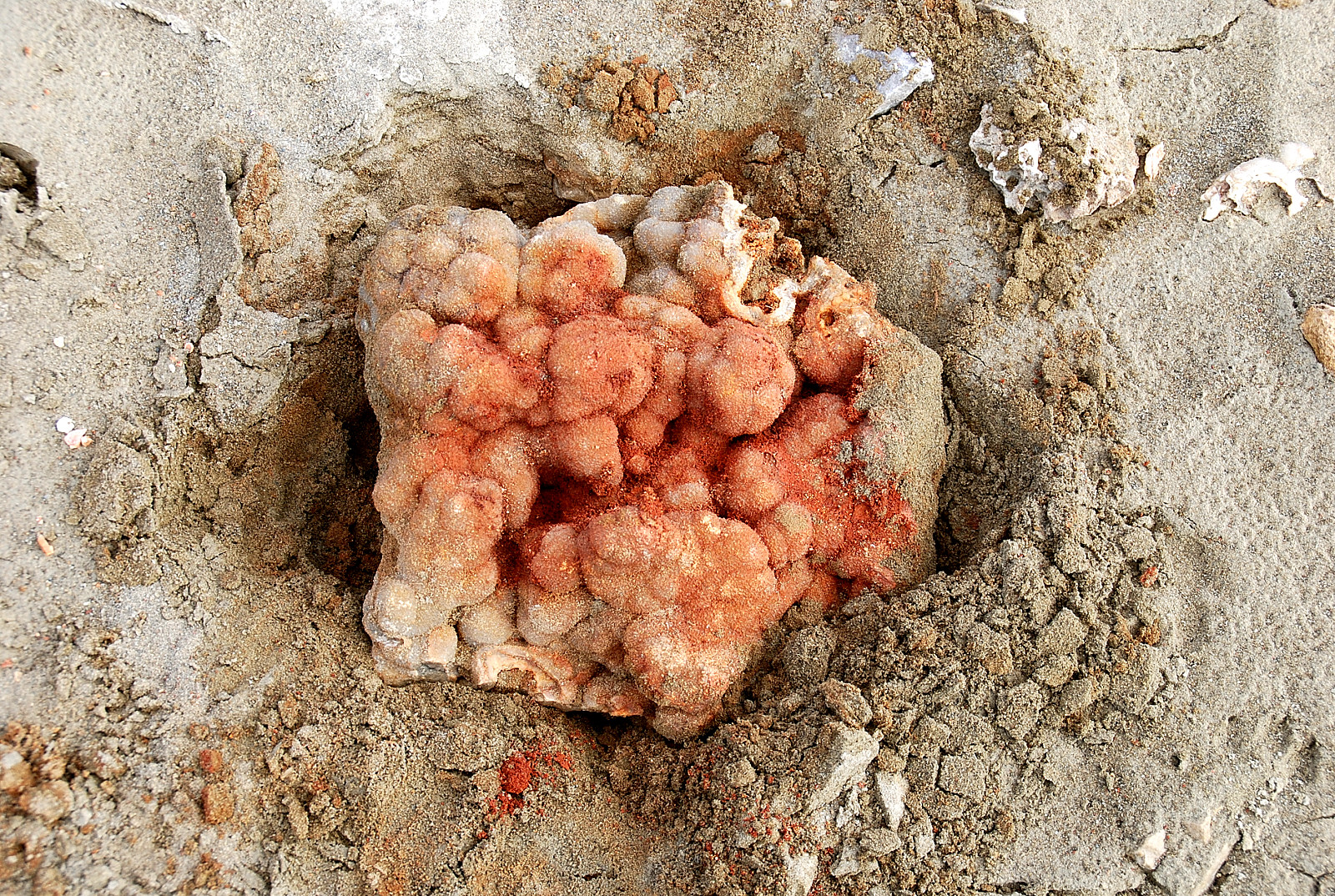 Still not sure what color the bubbles really are tho…due to the heavy clay stain on them now…hopefully by tomorrow morning I will have a good idea what color they are…well while down there admiring it, I heard a new dog yapping and yelping and ran up to the truck to discover that Missy and I had a visitor….