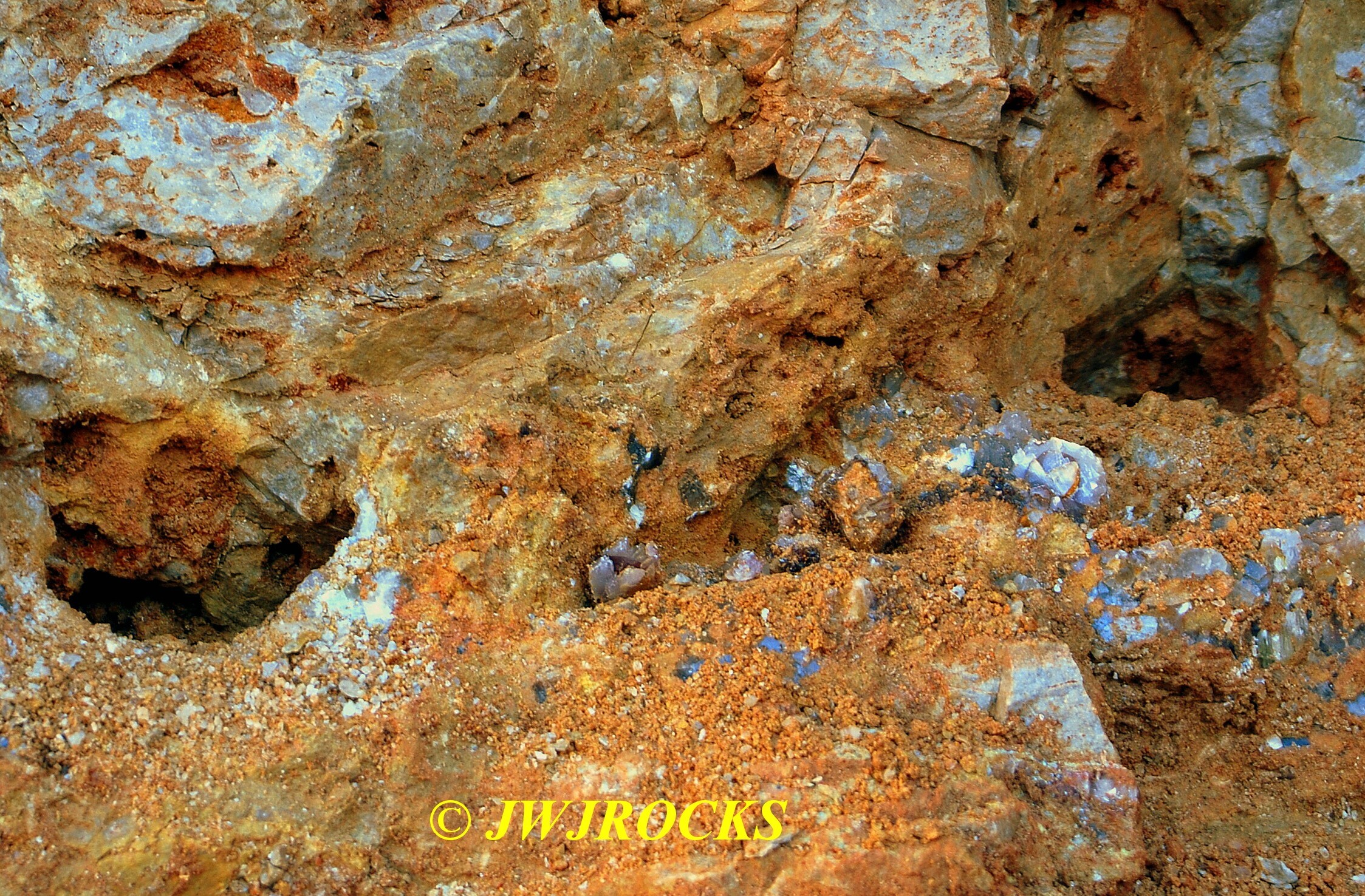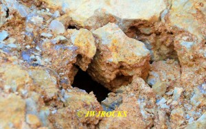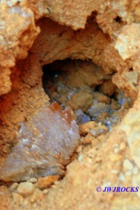 …and further inside the initial pocket opening, you can see yet another pocket opening up deeper inside the wall from the first one…and let me tell you, about every cluster that I pulled out after that initial shock, consisted of alot of oohhhs and ahhhsss and holie cows too….within five minutes I had the third bag filled and was headed to the truck for yet another two bags….an hour later I had those two bags filled and the pockets were empty. I decided to drive over to the newer blast pile area and see what could be found there.