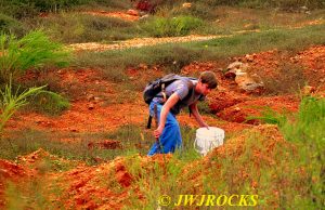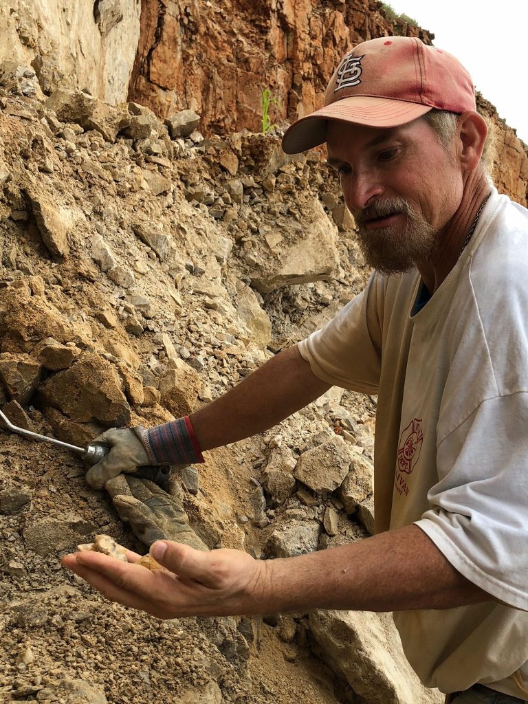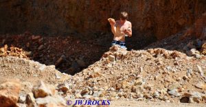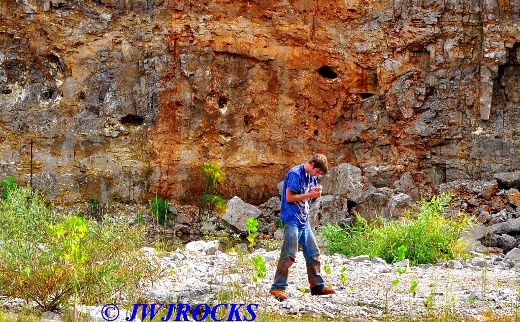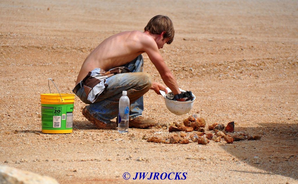 …and actually did pretty good this time as well, eventually having to use his hat this time since he shed his now dirty shirt for the heat….I had forgotten to tell him about the short cleft wall we had pulled down with prybars when the Tyler Club was there with me, mainly to make it safer, but we also found pockets behind it and Justin was able to find several under the rocks in that area, many that made him happy. 🙂