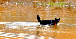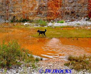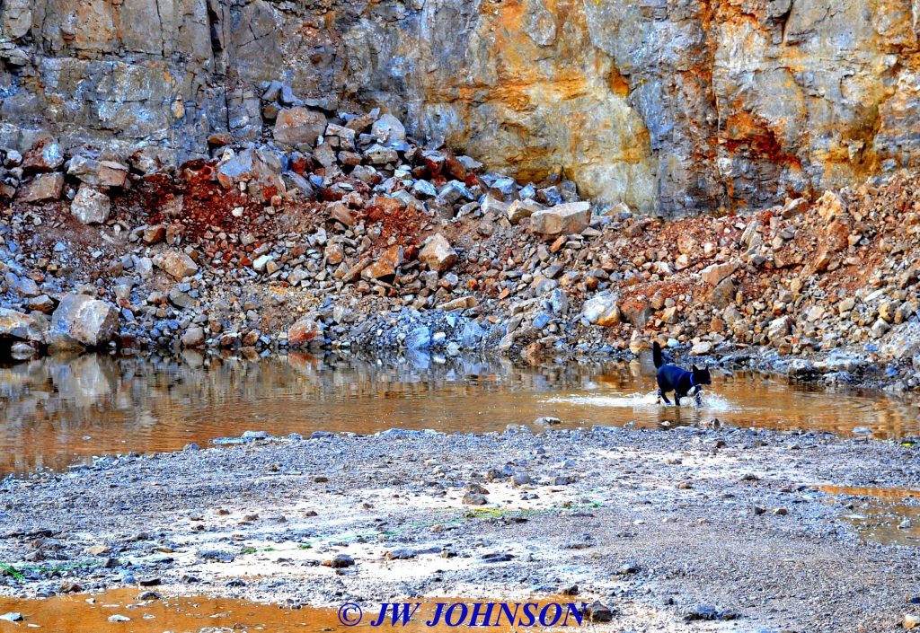 From there we drove to the SS Quarry to see if we could find some poker chips or dogtooth crystals…while we were searching for pockets, Onyx decided to go wading and swimming….