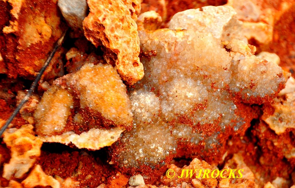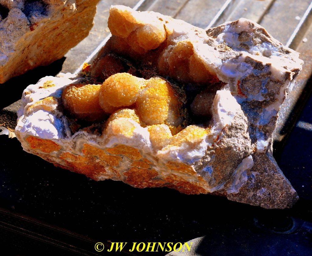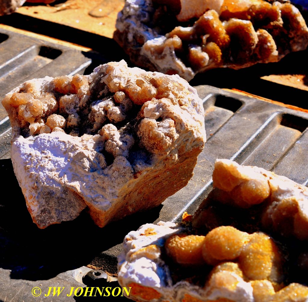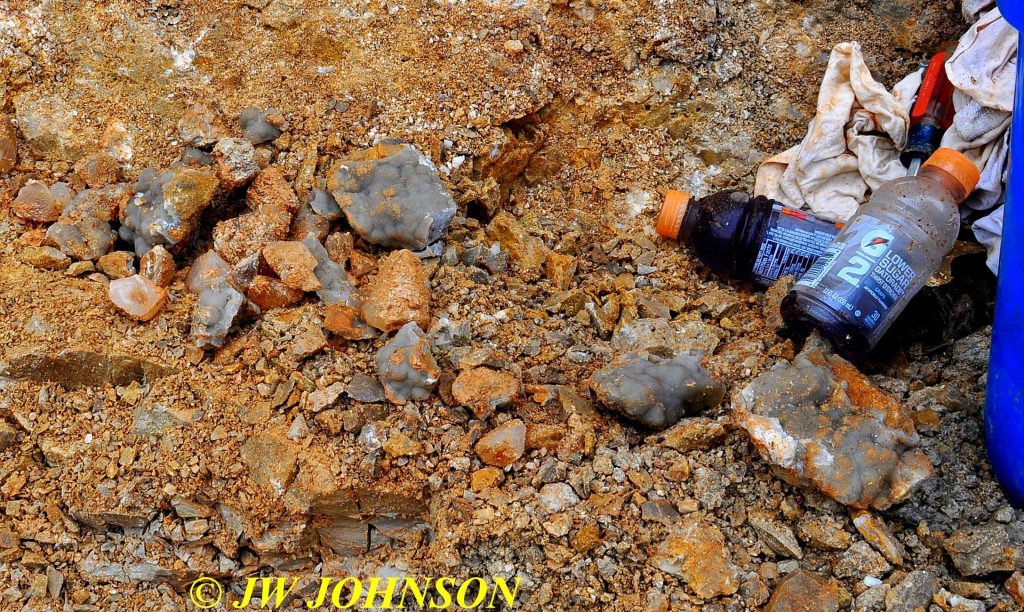 …he was like a kid in a candy store and fun to watch…I don`t believe I have ever seen one person so enthusiastic about finding druse quartz, at this location especially !! I also don`t believe I have ever seen anyone load up as much druse quartz to take home with him from this location…he was starting to worry about having enough room in his car for it all by the time we got done. In the meantime, I was finding some nice stuff up the hill and to the south a little ways from him…