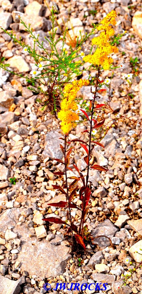 …I looked down at my feet and was surprised to see golden rod growing in the floor of the quarry….see it in the fields all the time, never expected to see it growing out of the rocks….
