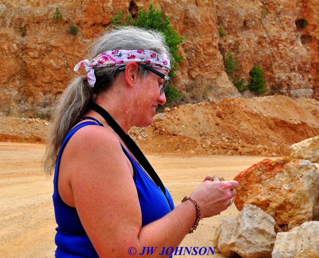 The next morning, after I got up and was nearly ready to go, I looked out front and saw Abbi parked in front of my house, dome light on and she appeared ready to go as well. I got my truck packed, Onyx inside and away we went, stopping only for gas at the Phillips 66. We made good time getting down there, arriving just ahead of Nathaniel and Chuck, they were 10 to 15 minutes behind us. As we pulled in, I parked to the right of the new blast pile on the east side of the quarry….