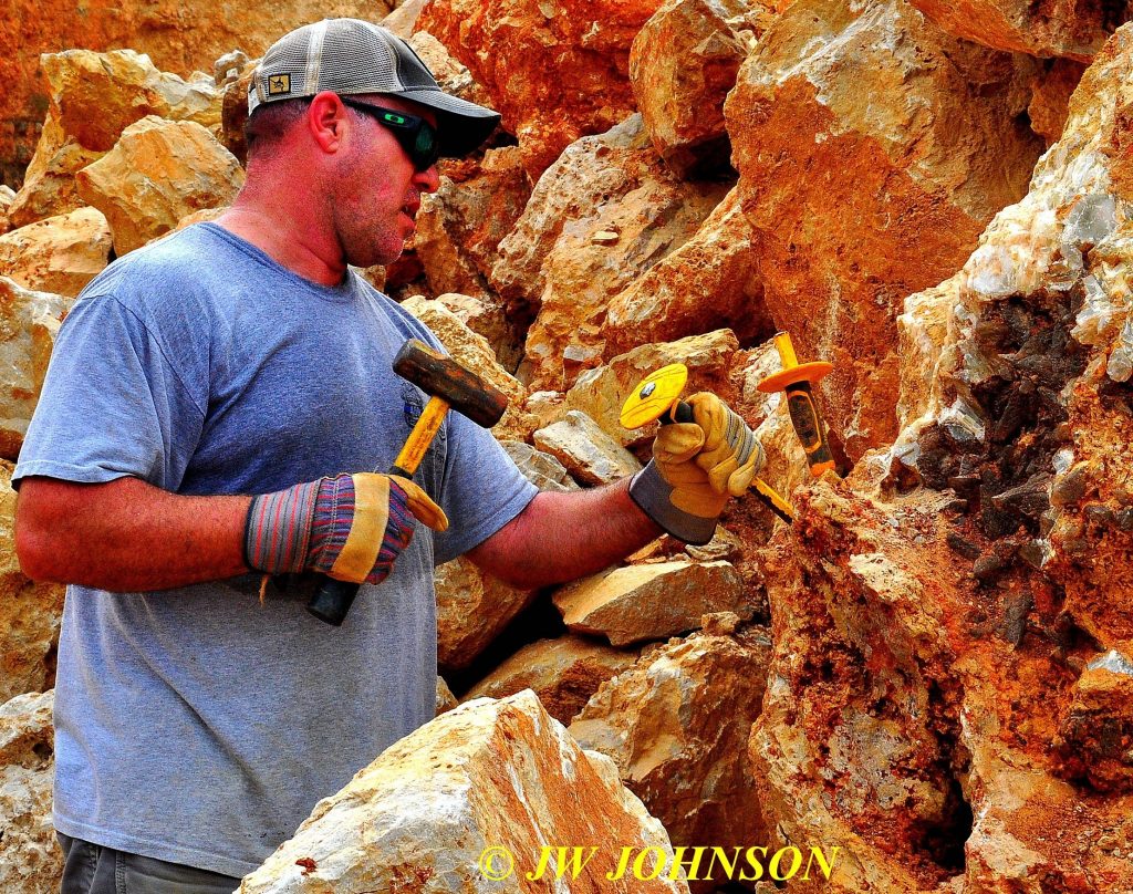 Back in July, my good friend Justin emailed me to see if he could come visit with me and asked if I would take him rockhunting here in Missouri. I met Justin a few years ago on one of my annual trips to the Hot Springs area of Arkansas…one of my quartz crystal excursions in the fall time, and we quickly hit it off and became good friends. I met him in the parking lot that evening shortly after I arrived at the condo I stayed at on Lake Hamilton. I brought him some flats of Missouri crystals and minerals and told him back then to come visit with me and I would take him rockhunting up here…so he was finally taking me up on the offer. Justin is a neat guy, very mature acting for his young age…he works in what some of us would consider a stressful job…hospice care…a very vital and caring field these days and one that is much appreciated as well by many….so I highly respect him even more for choosing such a field to work in. He drove up a few weeks ago on a Friday and arrived early evening…he checked out my collection inside the house that evening since it got dark soon after his arrival, and then the next day checked out my rock gardens during the daylight. I have heard many refer to my interior collection, like ” walking thru a museum ” but Justin thought the outside gardens were like a museum as well, although they could prob use some weeding and its been way too hot for that this summer.