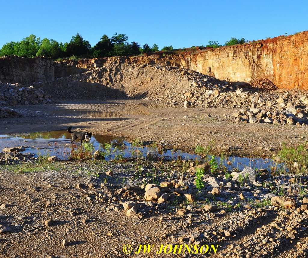 Onyx and I drove down to the Secret Spot Quarry early Sunday morning June 3rd, to see if we could find some more druse yard rocks…I had expanded one rock garden and began another and had some extra room for a few more…the week before, we poked around at the tailings dam for a while looking for druse yard rocks, and then decided to drive over to the quarry and check it out…as we drove down the entrance road, it appeared to me that it was wider and smoother than it had been a few weeks prior, and when I got to the top of the hill above the quarry itself, I was surprised to see the dirt and brush pulled back quite a bit…….