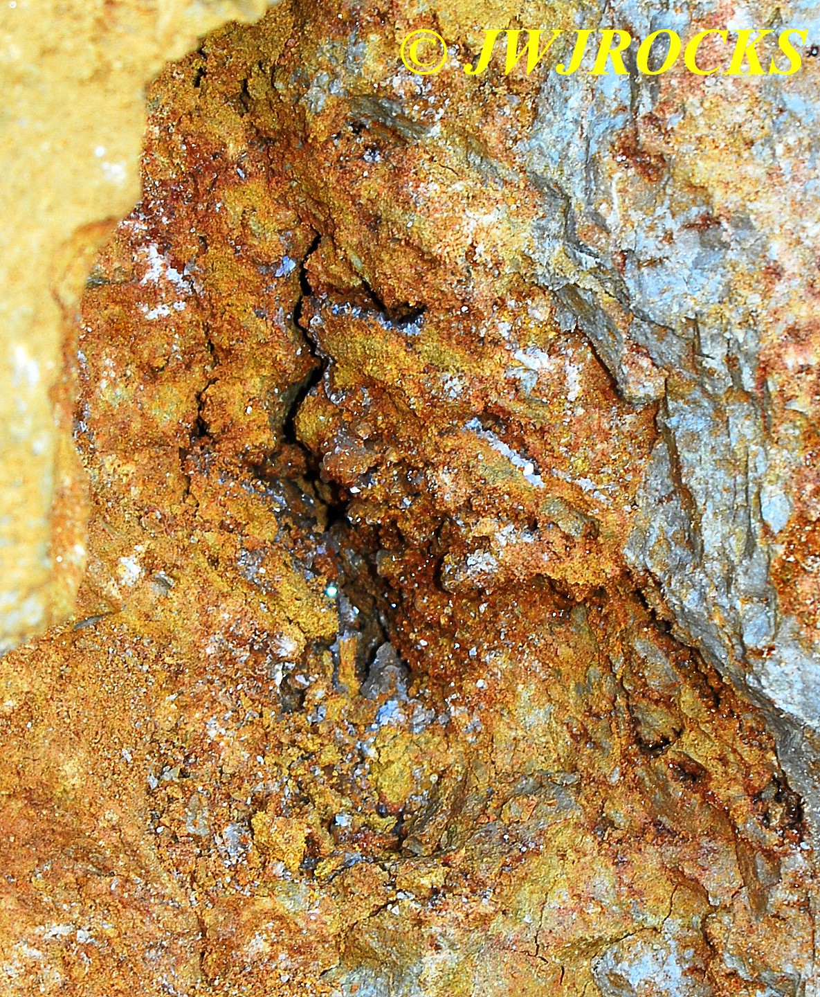 …and at one spot along the wall, I looked up, as I normally do, and spotted some beautiful black druse pockets way up there…about fifteen feet higher than I could possibly begin to reach….