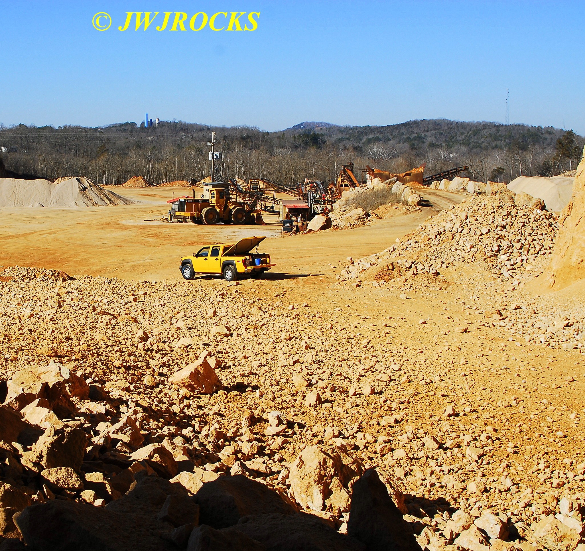 I had actually let a few of my rockhunting buddies know about it as well, and a couple of them had considered making the drive up there as well. After walking around the new pile for about the first hour, I texted them and told them not to waste their time because in that hour, I only located one single crystal and no wall pockets either. I`m not saying there were no crystals there…it`s likely there were, but they were prob buried underneath all the rubble, too. It was starting to look like a bust for me, which would be the first time since I have never had a bad day of collecting down there yet. I took a water bottle break and then drove over to the prior pile…which they had used to create a ramp up……