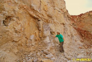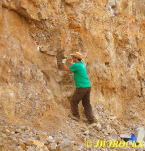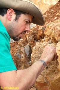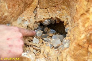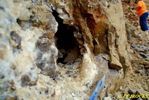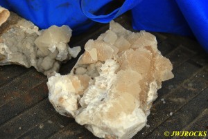 I had actually let a few of my rockhunting buddies know about it as well, Â and a couple of them had considered making the drive up there as well. After walking around the new pile for about the first hour, I texted them and told them not to waste their time because in that hour, I only located one single crystal and no wall pockets either. I`m not saying there were no crystals there…it`s likely there were, but they were prob buried underneath all the rubble, too. It was starting to look like a bust for me, which would be the first time since I have never had a bad day of collecting down there yet. I took a water bottle break and then drove over to the prior pile…which they had used to create a ramp up……