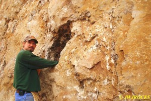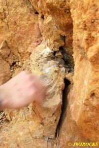…it appeared to me that someone may have dug under the boulder on the right, but didn`t follow up…. in my estimation, since I soon began pulling out some beautiful plates…here is the opening between the boulders…