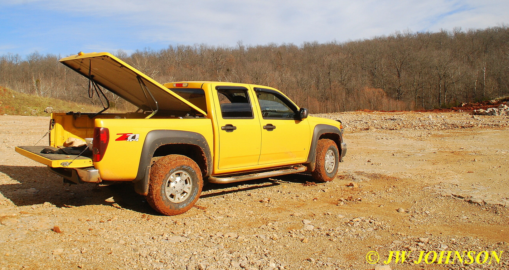 We arrived a little after noon and while driving in, encountered some heavy soupy and sloppy mud, on top of the otherwise normally rocky solid roadway, so I had to shift into four wheel drive just to drive down the hill to the lower spot, something I have never had to do before. Once parked down at the lower spot, I looked back at my truck and noticed all the mud on the sides and snapped this photo….