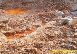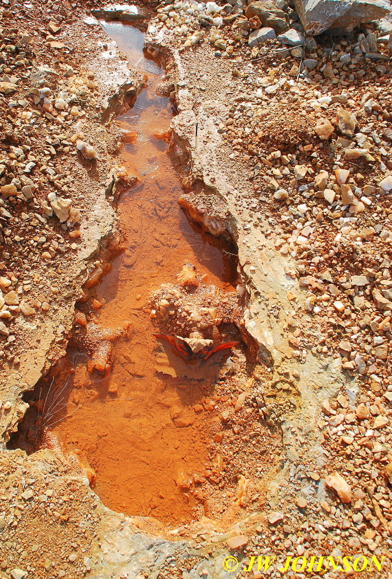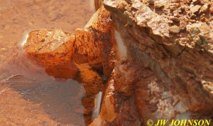 I walked over to the area that I had dug into the last time there, back when Virgil and Larry were there, and found the two pockets I had worked, half full of crystal clear water with a muddy orange oxide bottom….